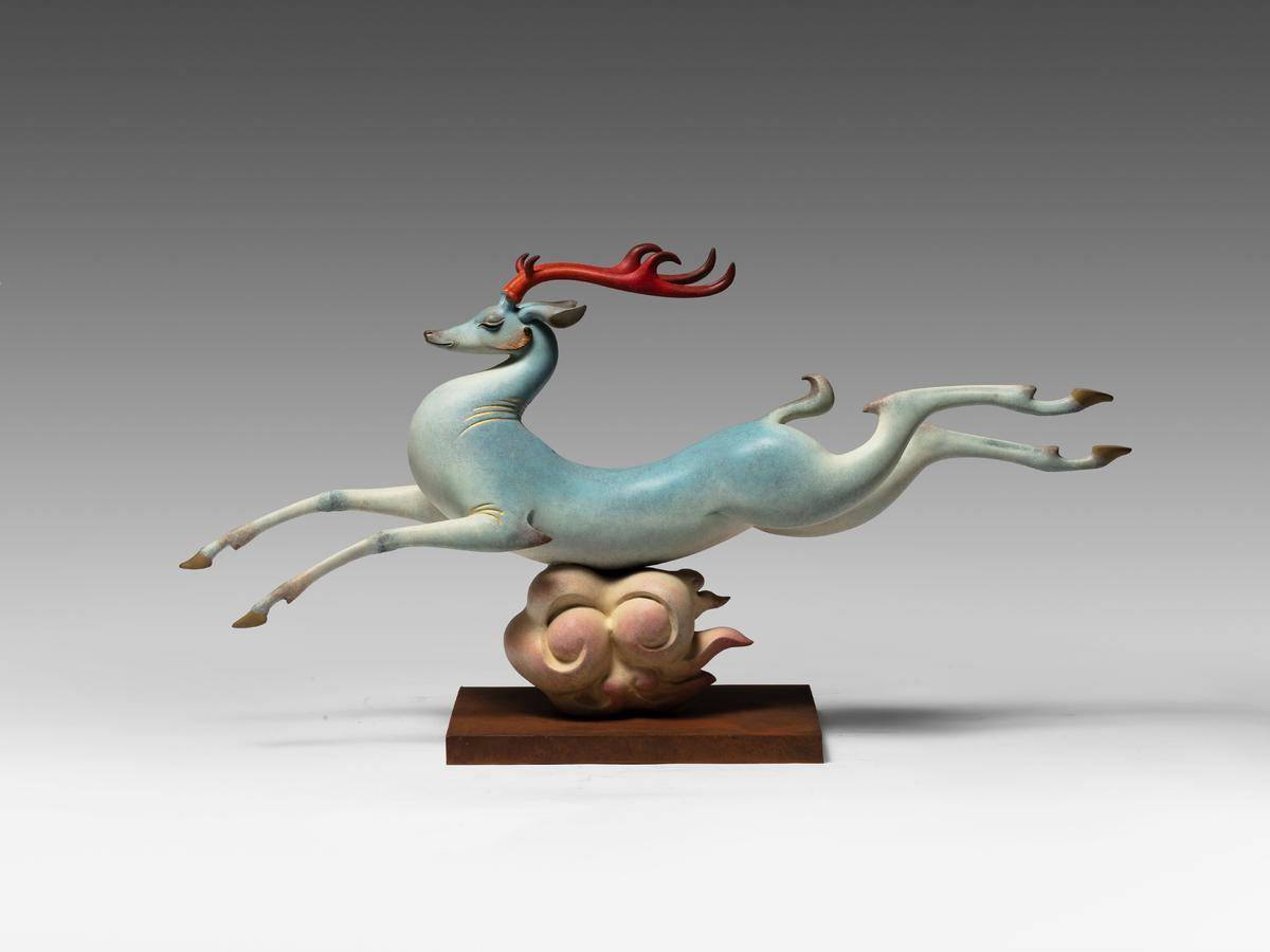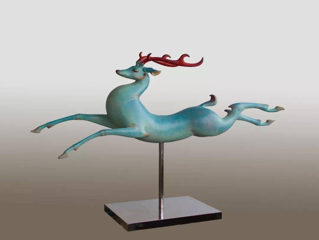 《鸣野》这件作品的灵感来源于汉代画像砖,汉代有很多灵动的动物造型,比如马,鹿,还有龙,这些动物形象造型简洁、气韵生动,用最简单的几根线条来表现,也许跟当时的文明程度有关系,可能当时的世界对人类来说还是足够神秘未知。当时的艺术作品都有一种神性在里面,以现在的眼光看,即不写实也不真实,这反而促成了某种艺术性,也是艺术的最高追求——源于生活 高于生活。