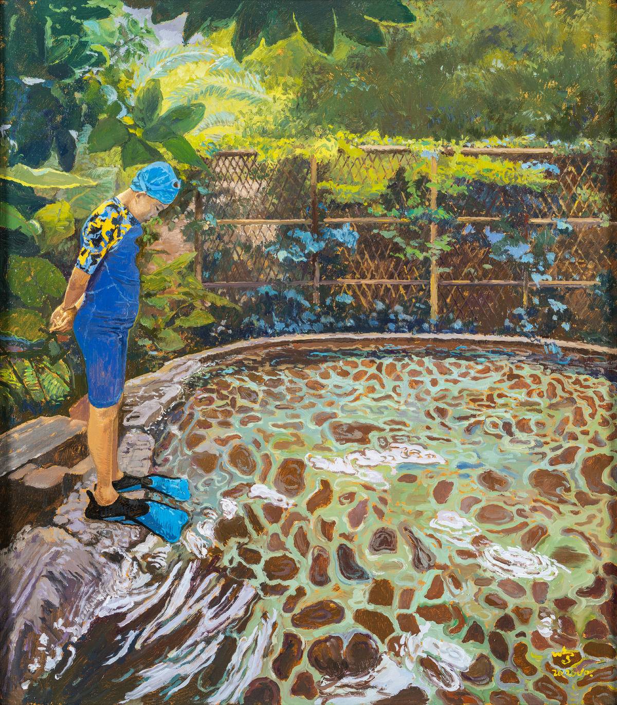乡村游泳池清澈见底,霍克尼画里找到一些启发