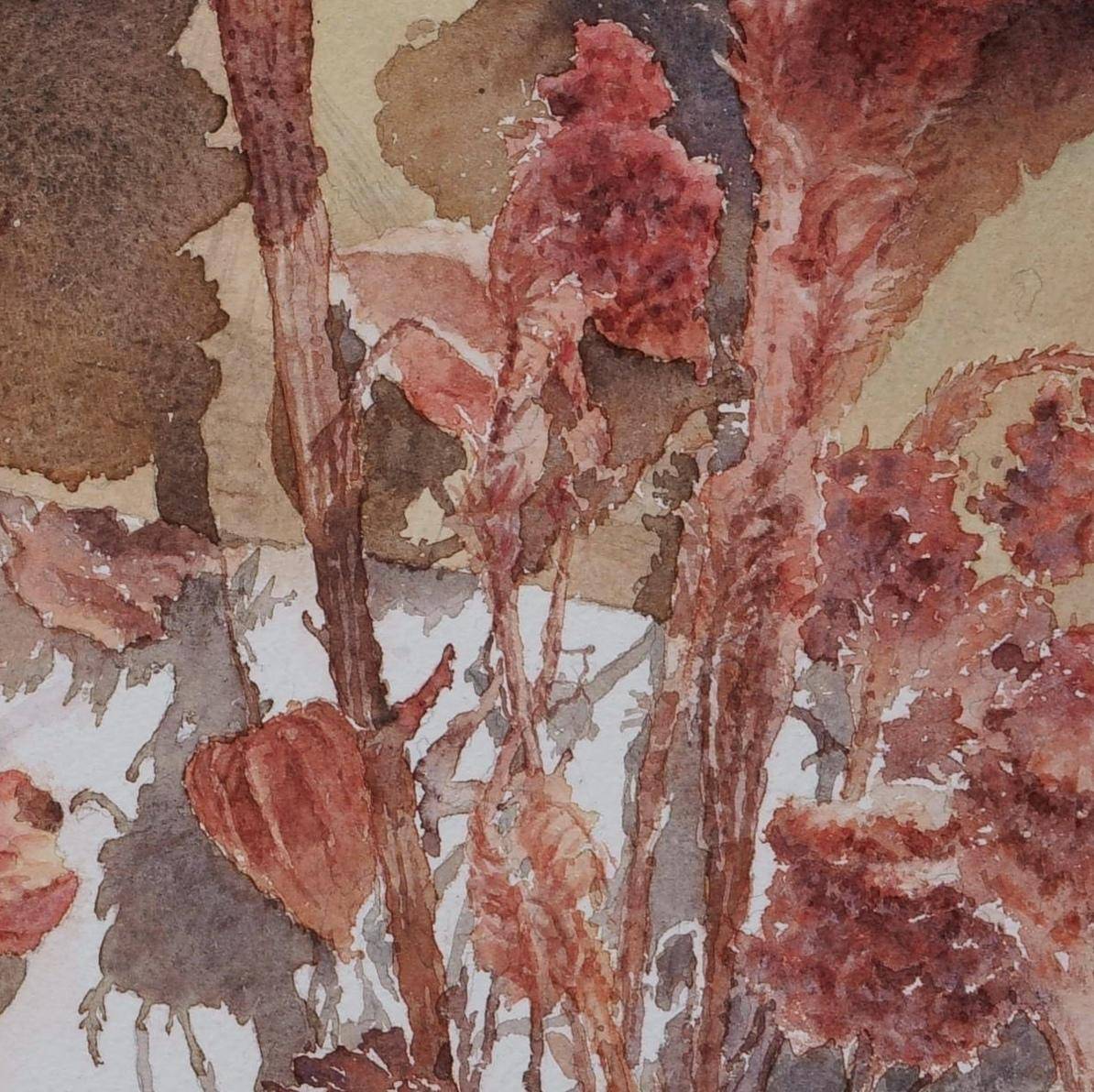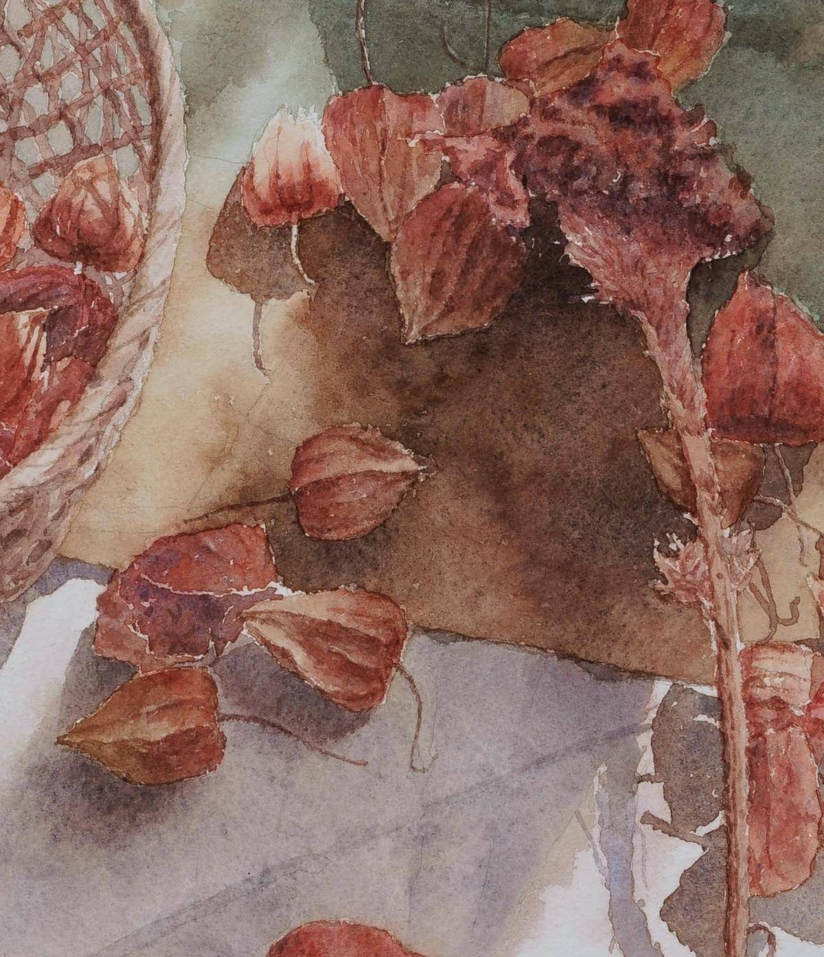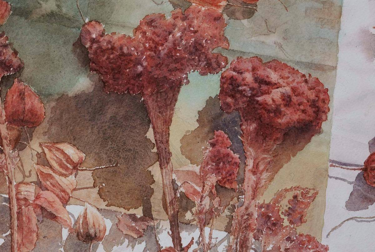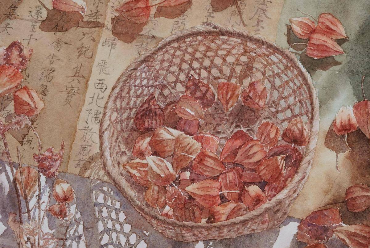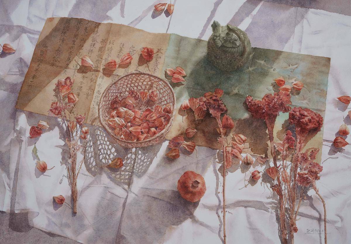 秋色:指秋天的鸡冠花、北方的红姑娘儿(一种植物)、成熟并已经干化的石榴,所有这些构成了秋天的色彩。