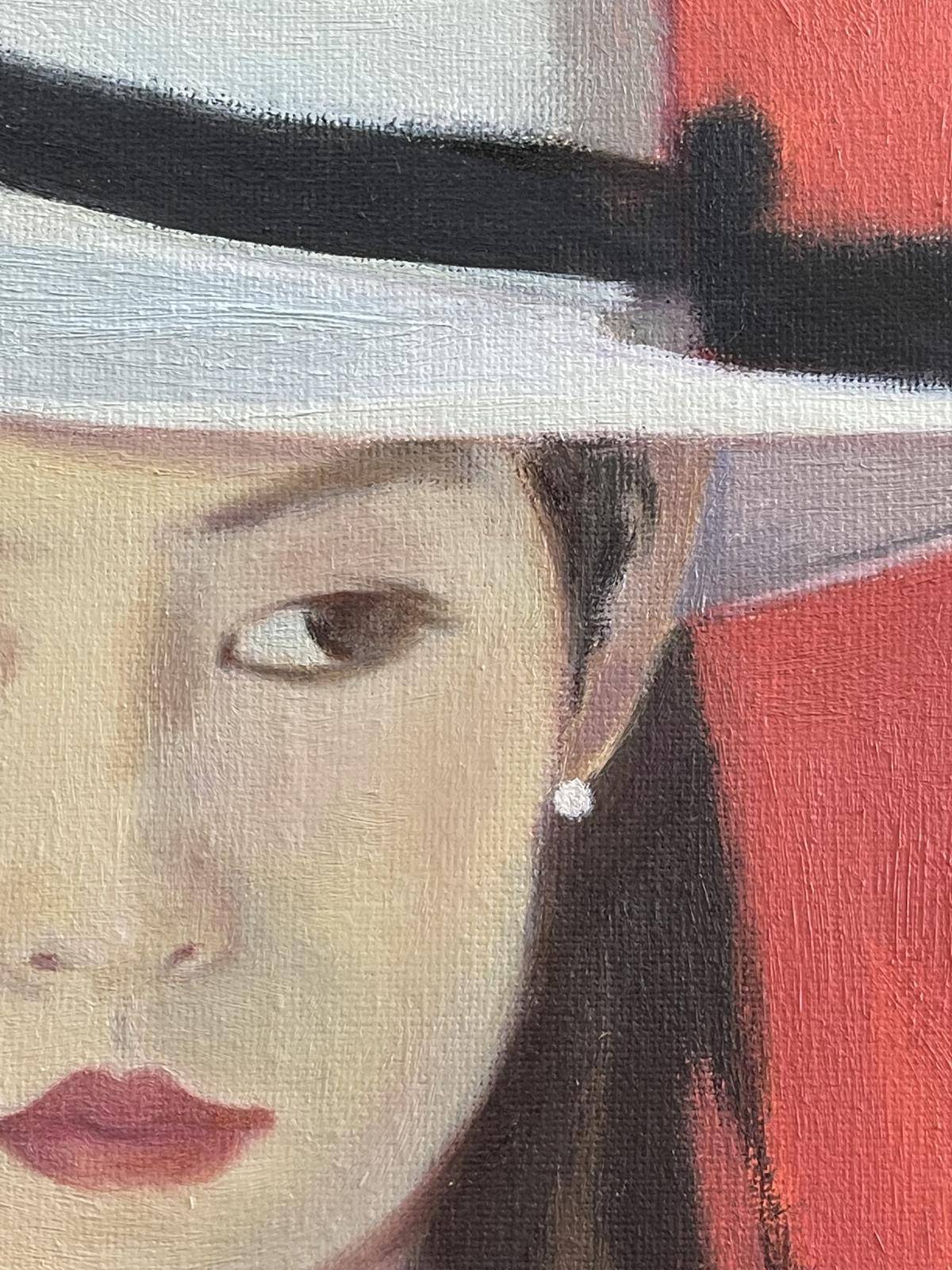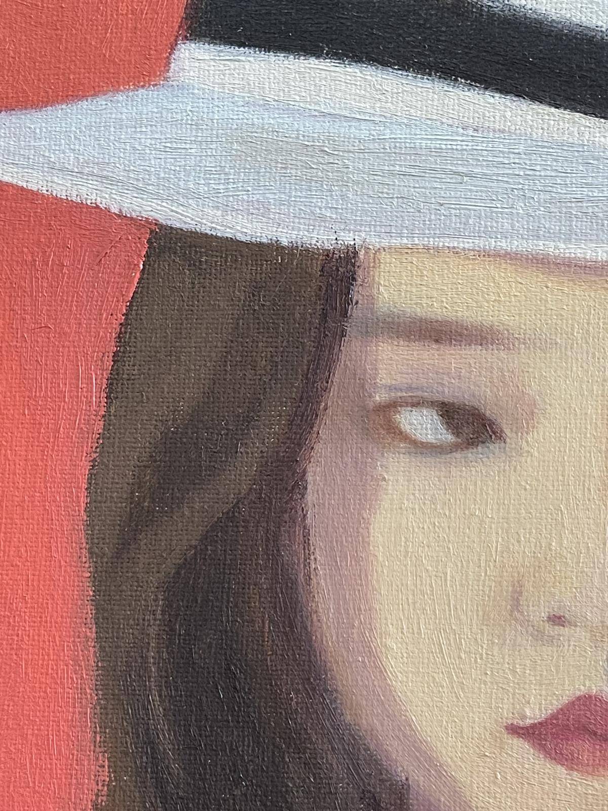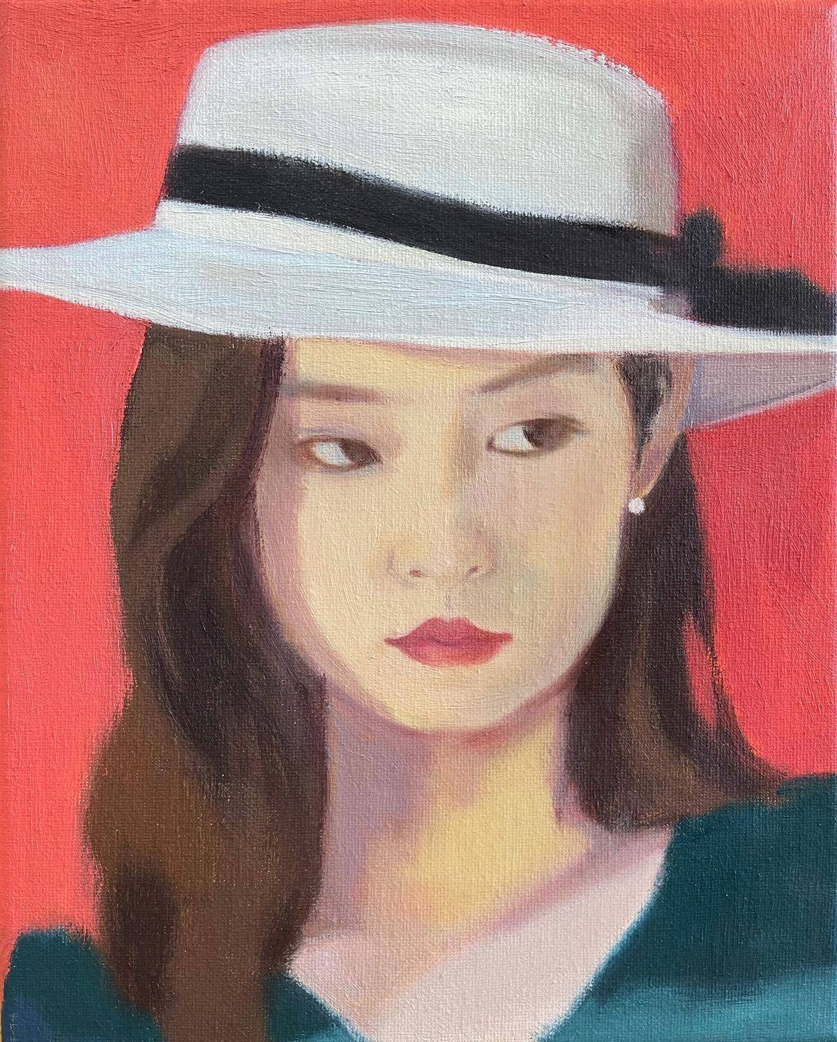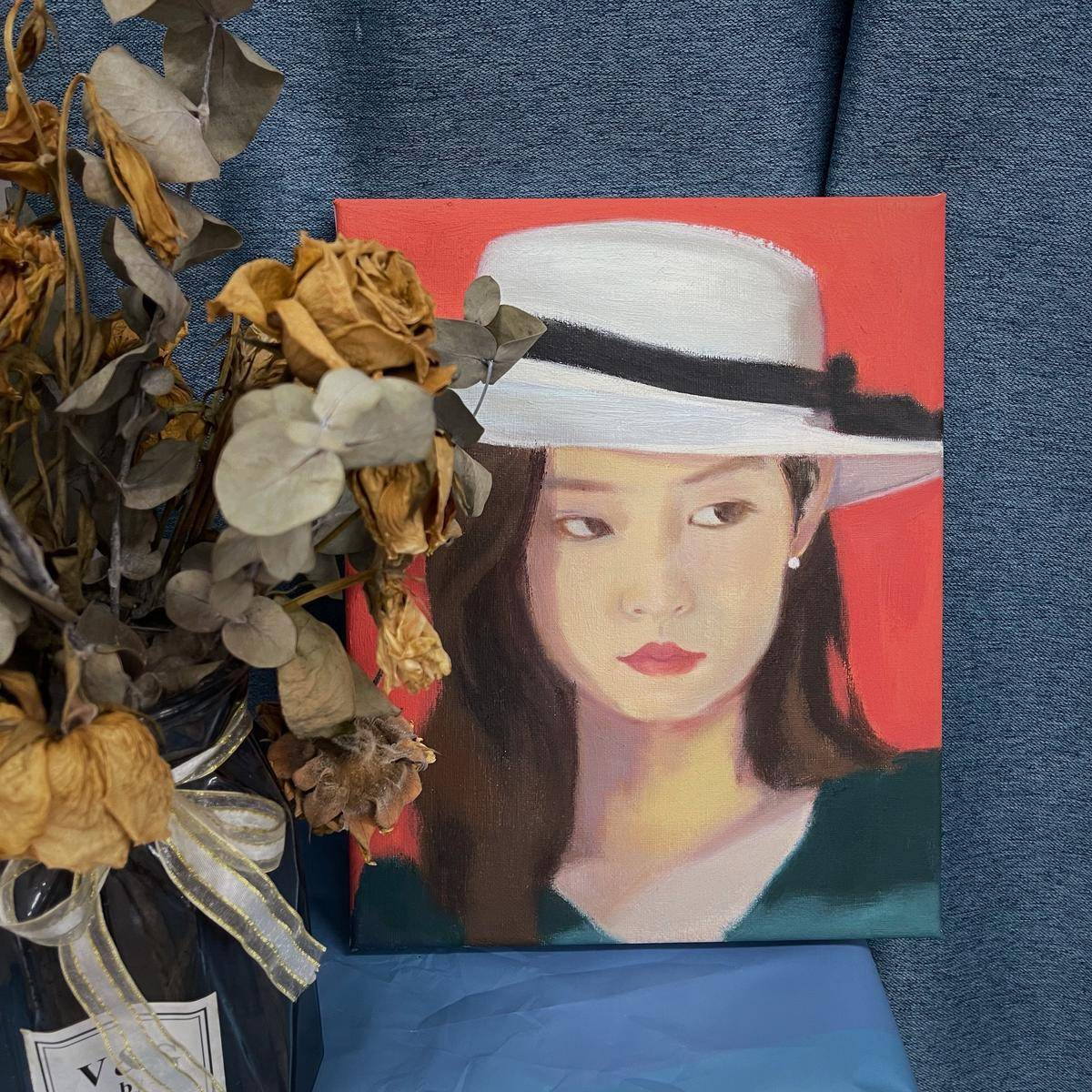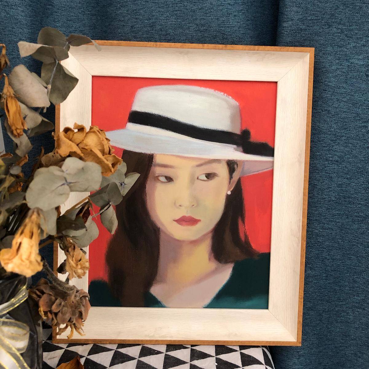 按计划实施25幅戴珍珠耳环的少女,这是第二幅作品,以帽子与珍珠耳环为固定搭配,描述各种心情状态的少女