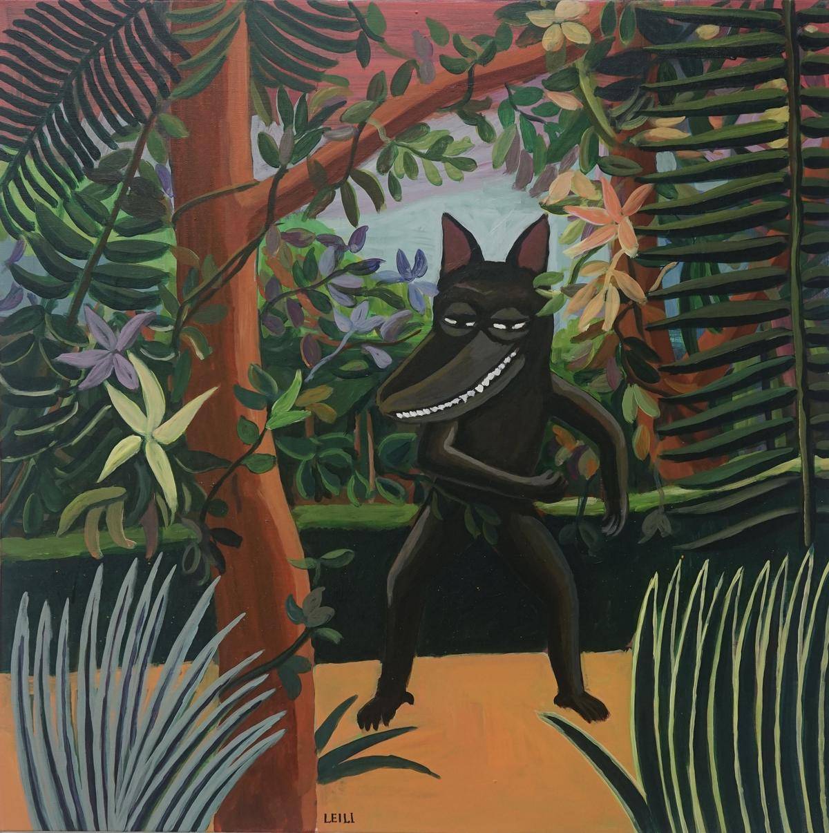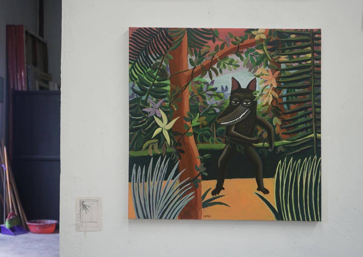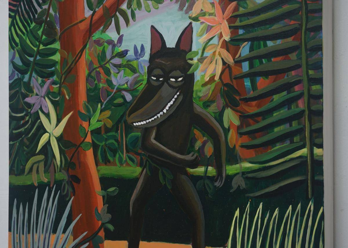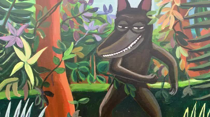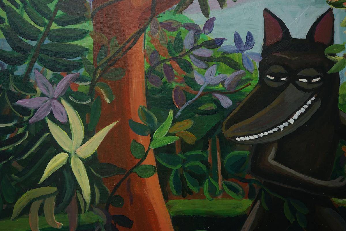 《丛林舞步》采用稚拙的绘画手法,描绘了可乐狼在一片花丛环绕下独自起舞的场景。在我们庸碌的日常生活里,是否也可以放慢脚步,欣赏美景,乘兴起舞。