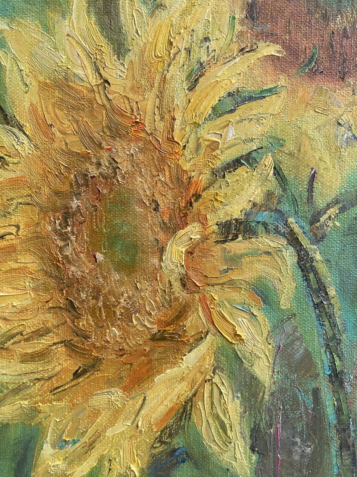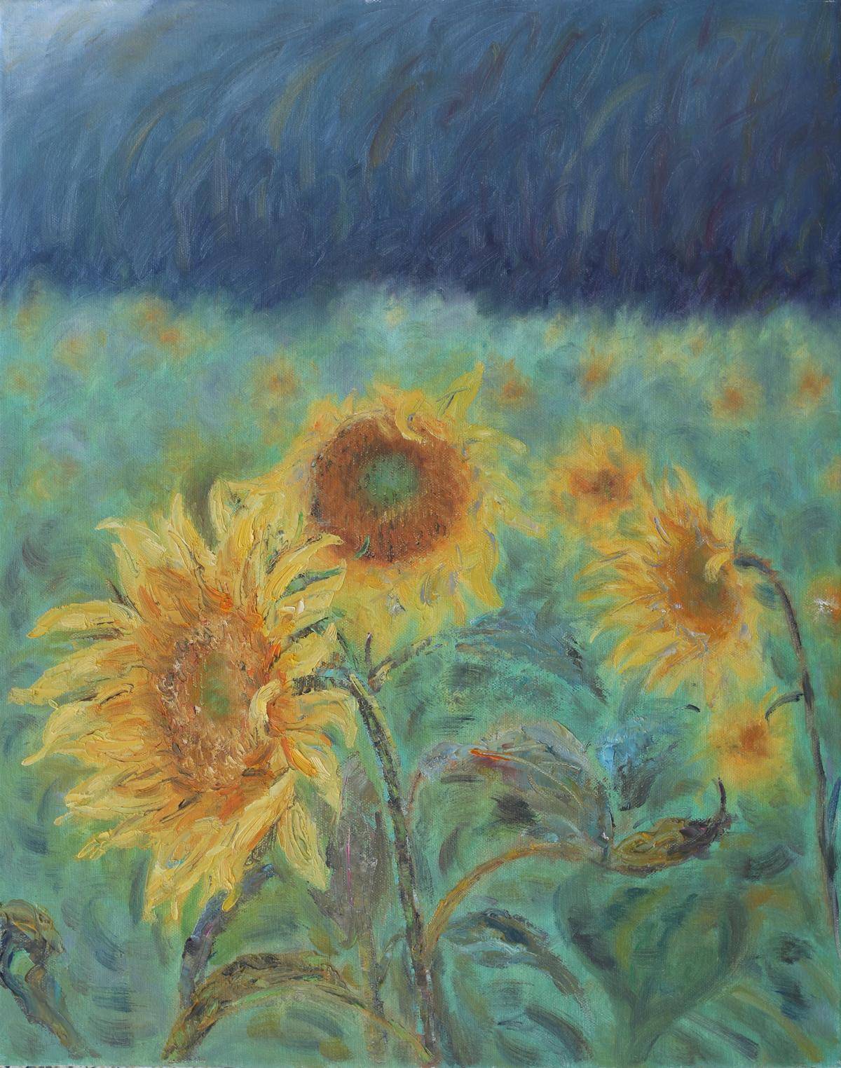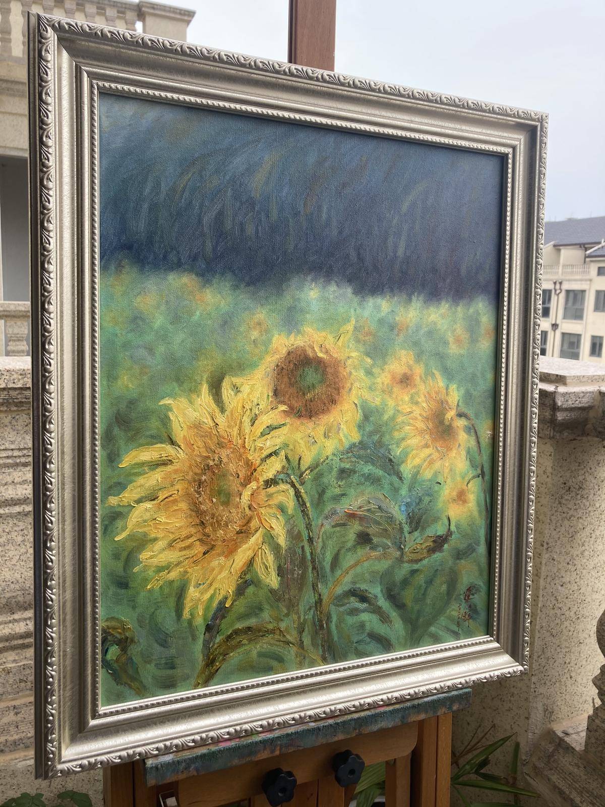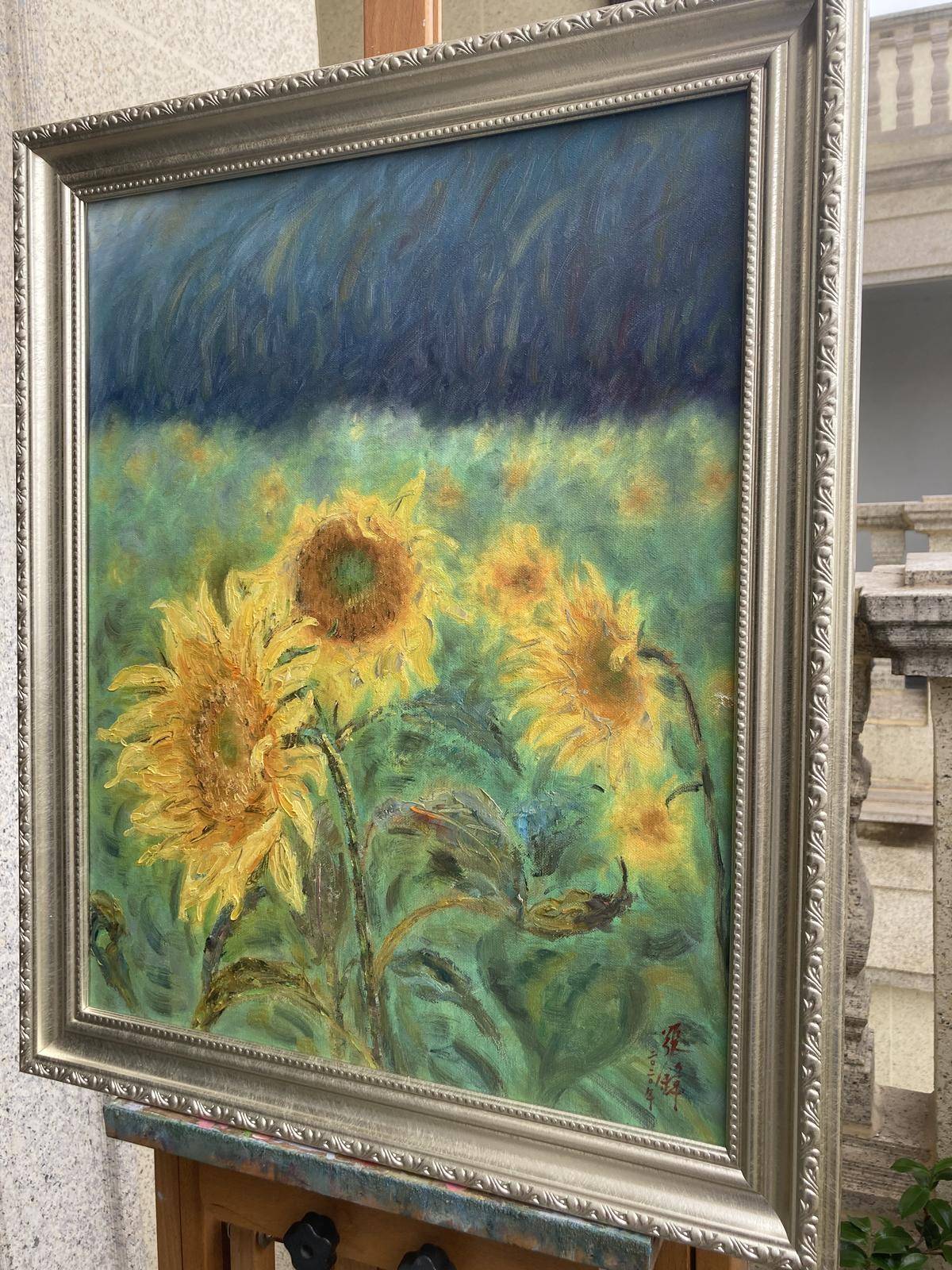 向日葵系列油画是本人10多年来一直坚持创作题材之一,每年一般会创作几幅,每一次提笔创作都会有新的想法与不同以往的感受,都会以比效微弱的变化展现在画面里面,有时候是比较客观的,有时比较主观的,总的来说向日葵系列是最能代表作者对艺术的情感表达。