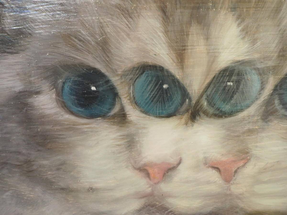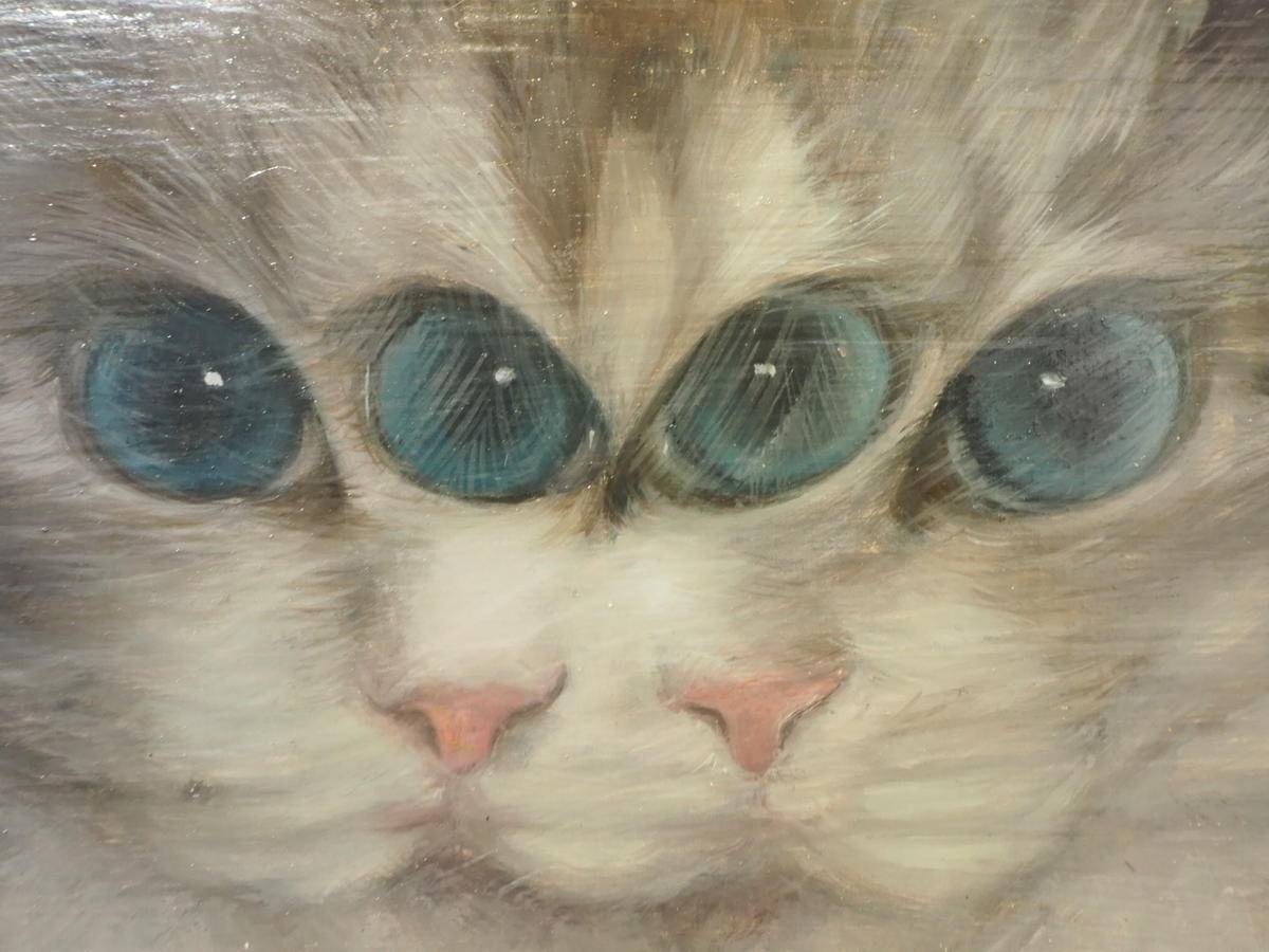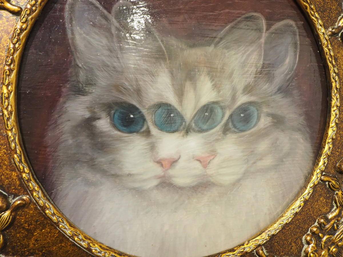 画中的猫是我养的一只母布偶猫。 每天面对它们, 当我在高度焦虑紧张的状态时转而进入一种恍惚迷离的状态, 导致看到猫重叠的效果 ,从而进入一个惑瞳虚幻的世界。 通过我的幻想和现实的差距 ,我需要用视觉效果来感受我我与宠物之间的那种孤独感、 无力感以及游离于主流之外的边缘感。“现代人”在难以把控的人际关系中颠沛流离 ,心若死灰, 对亲密关系只能敬而远之。 所以猫作为一种“亲人”避免了现实中关系的冲突于断裂 。猫的一生的“灵魂”只有主人。 纯粹而简单信任 承诺、陪伴、和关怀。恰恰满足了现代人对情感较为强烈的占有、控制和支配权。