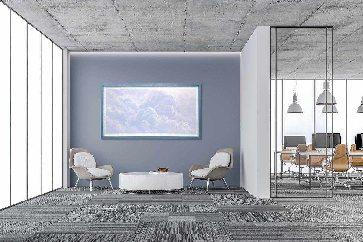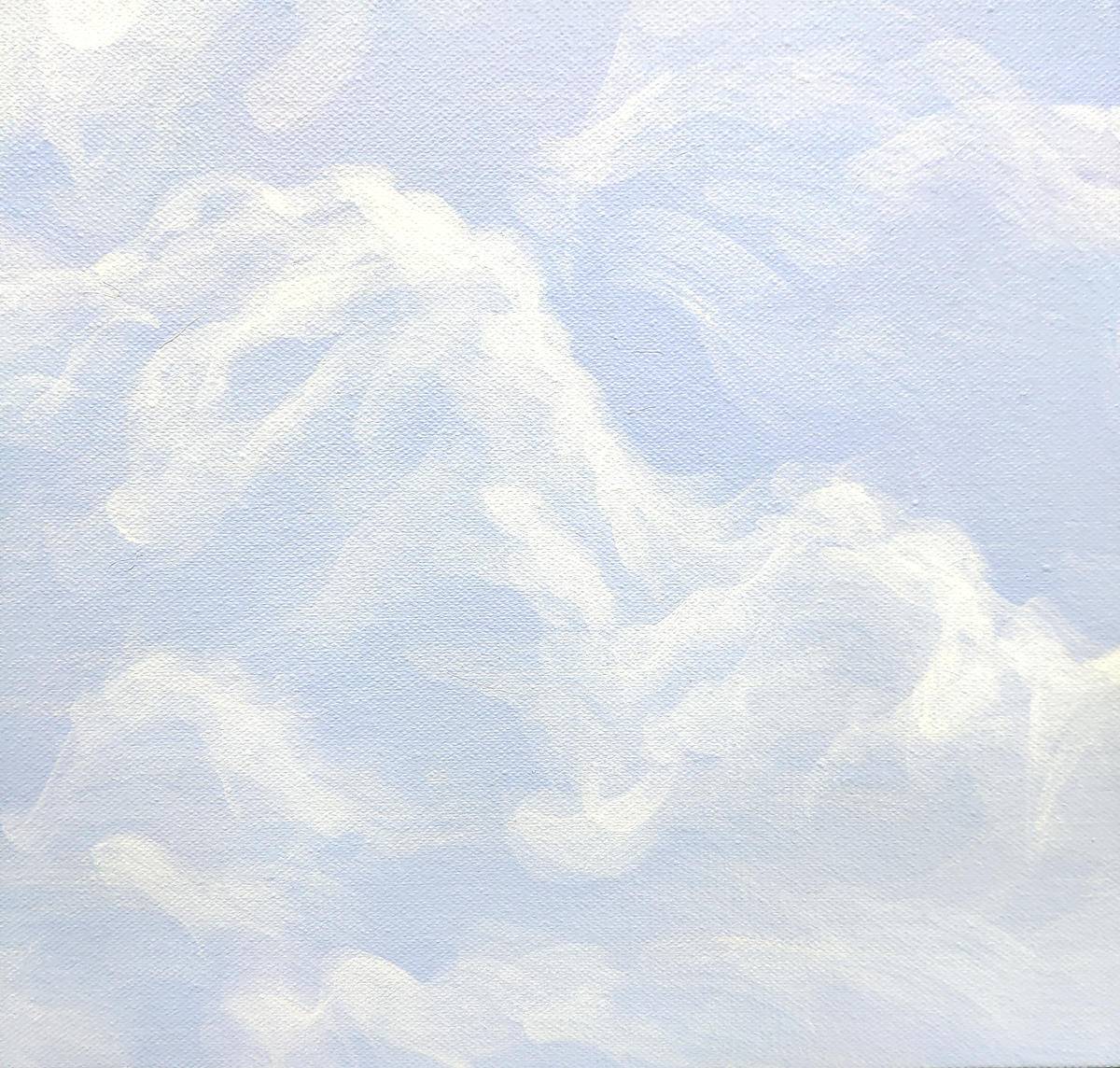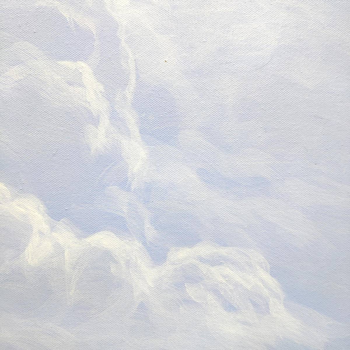 这一系列云的作品取名为云深不知处,出处为唐代诗人贾岛的五言诗《寻隐者不遇》。我自小读古人的书时,隐逸 ,高士,都是我崇拜的对象。看古画时,高士坐于山上抚琴,旁边有小童用炉子煮茶,不远处仙鹤在一旁站着打盹,山下桥上,友人骑着毛驴,正往山上赶来赴约会-----这些都是我所仰慕的生活方式,做人做到这样,就差不多是半个神仙了。所以在我自己的绘画里,也想去表达这种感觉。风景画里,我很喜欢空灵的感觉,颜色简单一些的,空间很深远的,虚实对比强烈的,我也很喜欢神秘的感觉。云作为这个系列绘画的载体可以完美地诠释这种意境和心理状态。