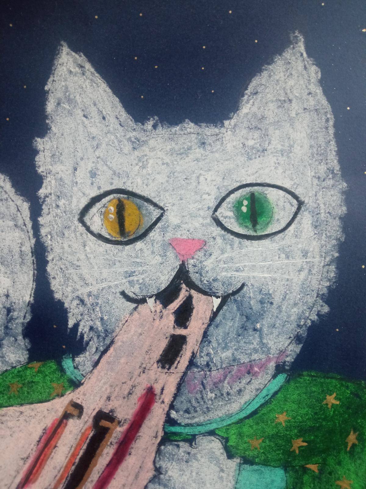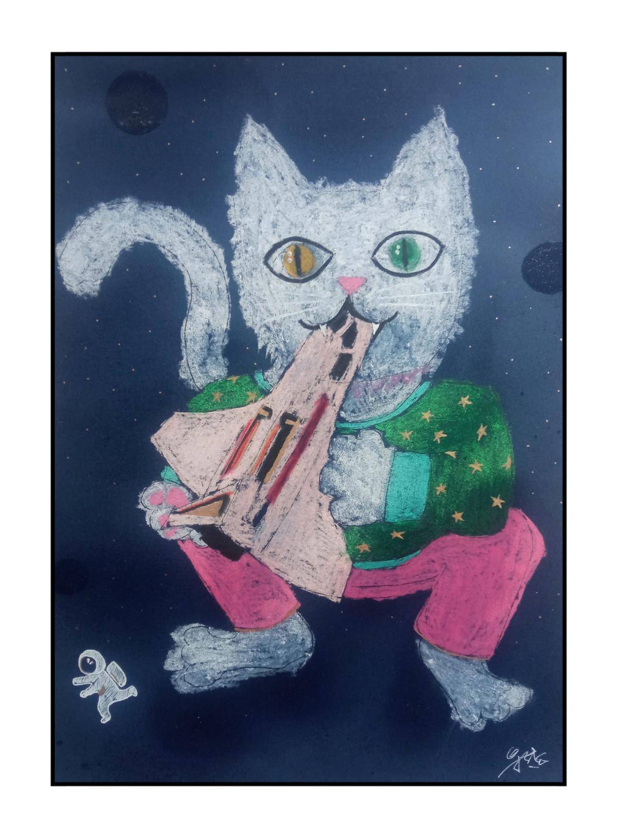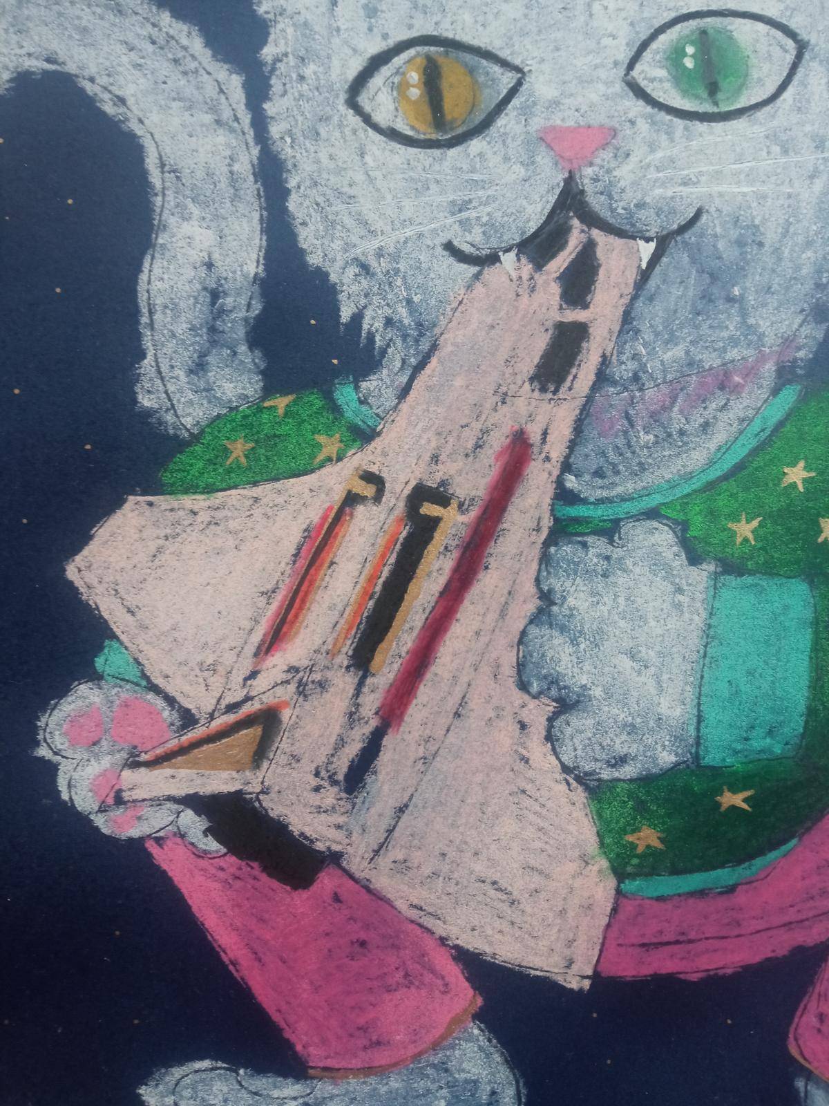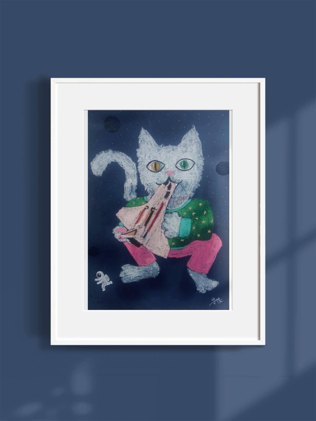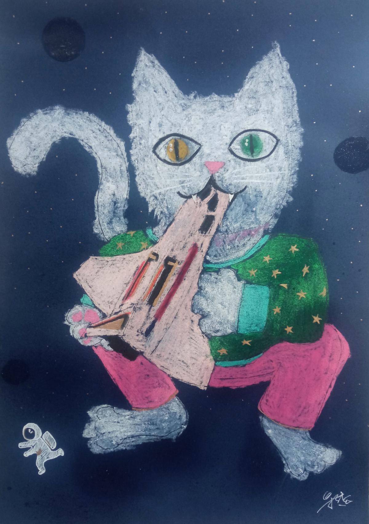 抛去原有的颜色理论知识,继续利用国画笔墨的概念,提升颜色和笔触的音乐性。所以《蓝调猫》并不止画面中的表面意义,更多的是我在用颜色与笔触探索音乐性,希望这一点有赏心者能看出来,那我会很开心,因为在这方面我花了很多力气。