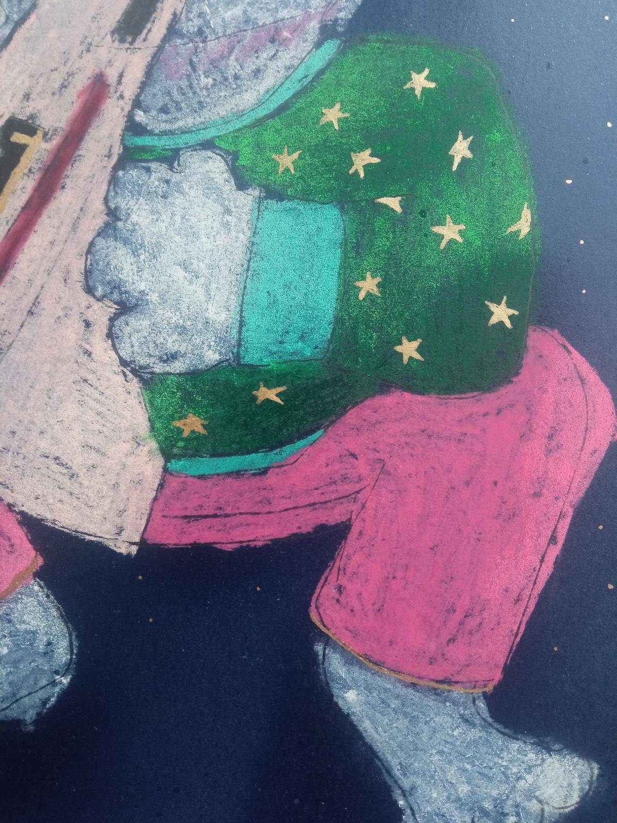 四、接触:本品大量运用色粉颜料,虽已做固色处理,但大力触碰画面仍会掉一定的色粉。画作娇气,请接触画作时手拿两边或托背面,以免弄花画面。