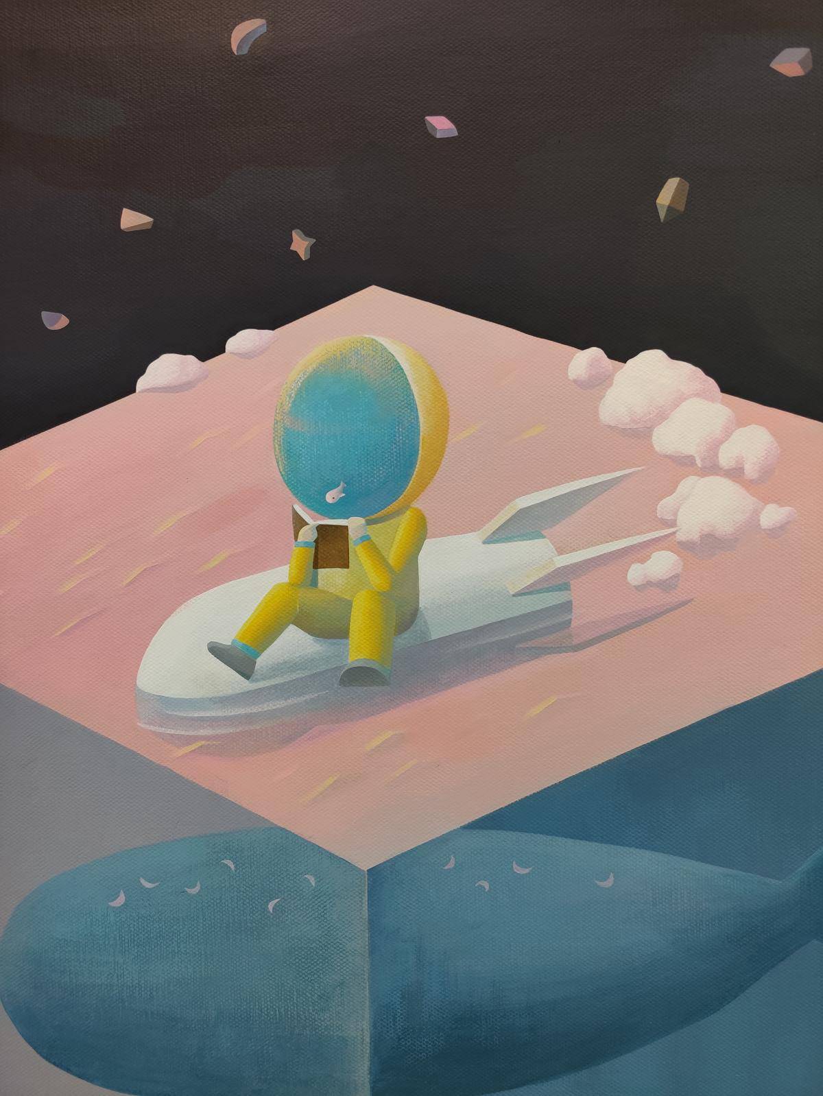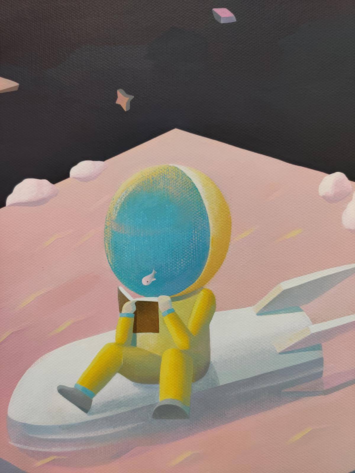 星际旅行家喜欢四处闲逛,每个星球的样子都不一样,这可太有意思了!他找了个喜欢的星球停在上面看书,心想:“我这努力的样子要是有人能拍下来就好了。”