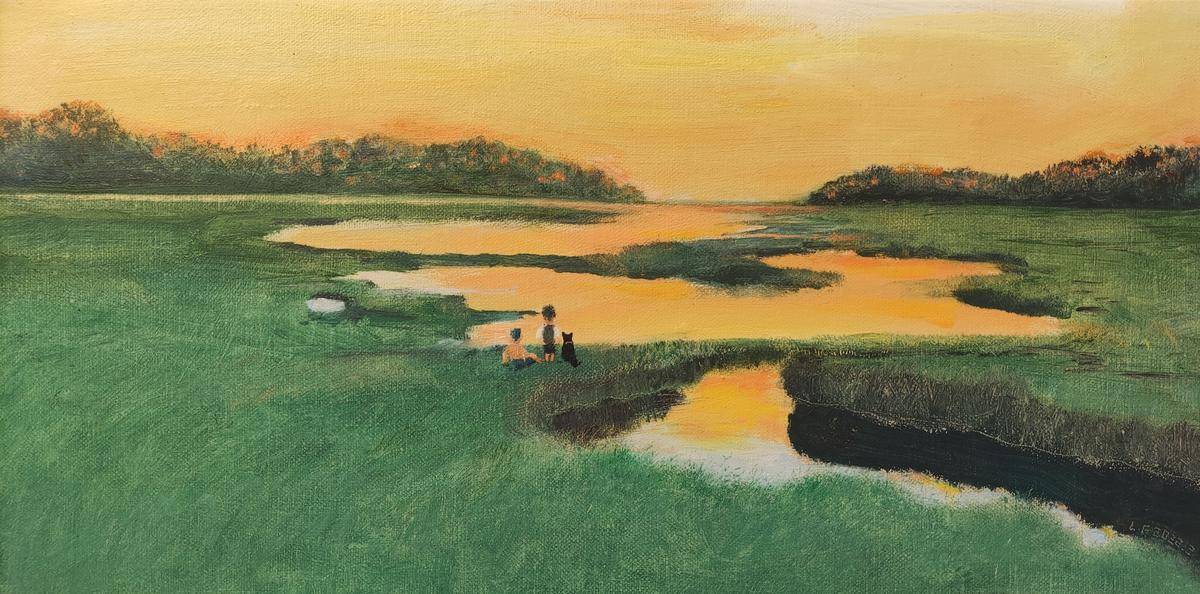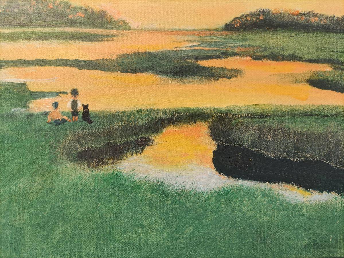 标签 油画风景晚霞草地