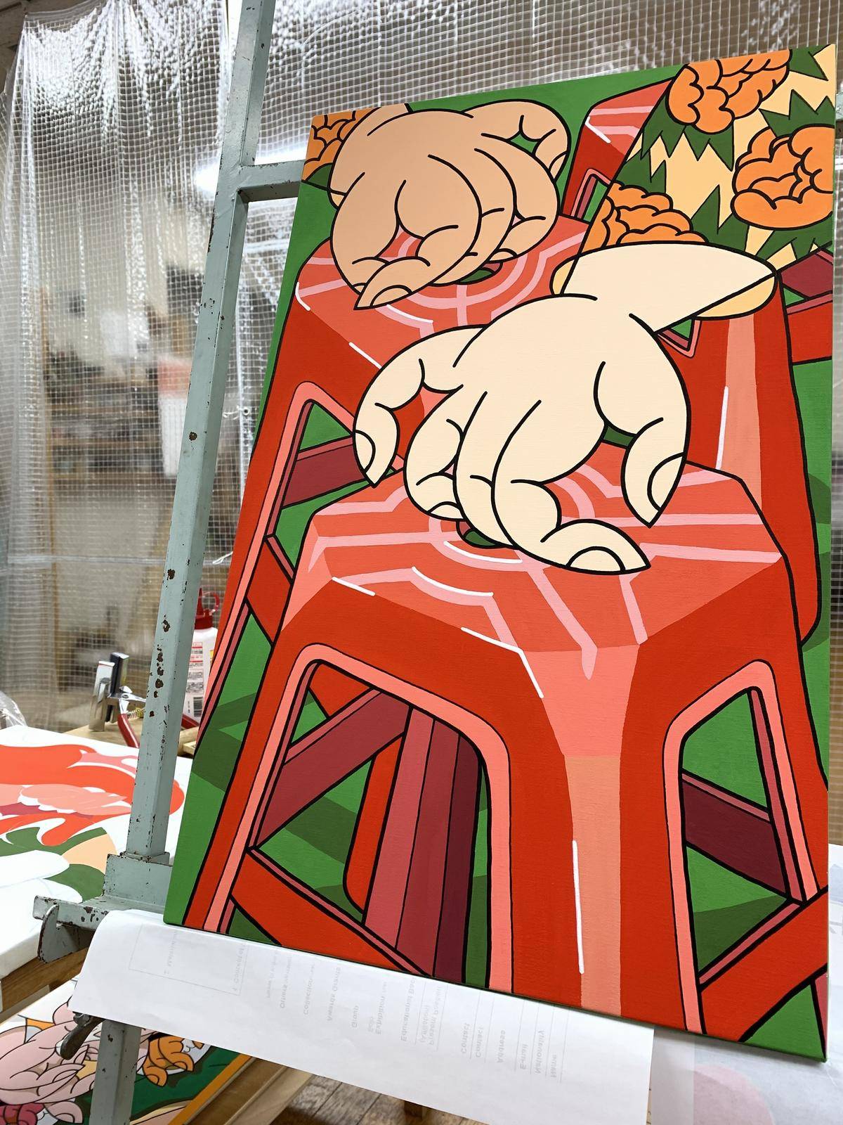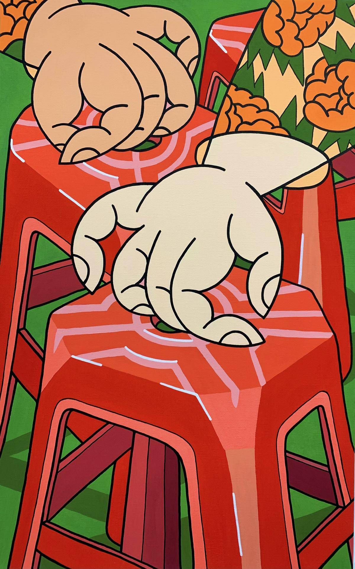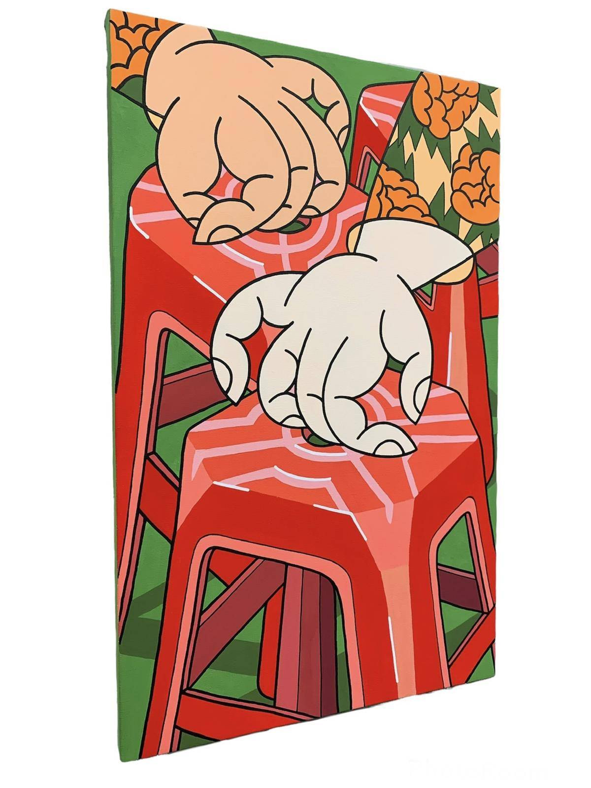 越看越喜欢越看越有意思!手部的弧线彼此独立但是整体看又有联系,配上椅子的长直线,舒服得很。看了以前的作品,红椅子似乎还有更深层的含义,这就更耐寻味了!![[偷笑]](https://static.artand.cn/static/src/public/images/common/face/face3.png)