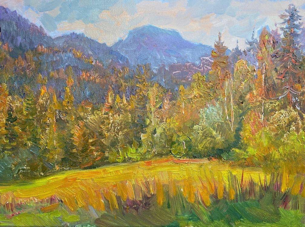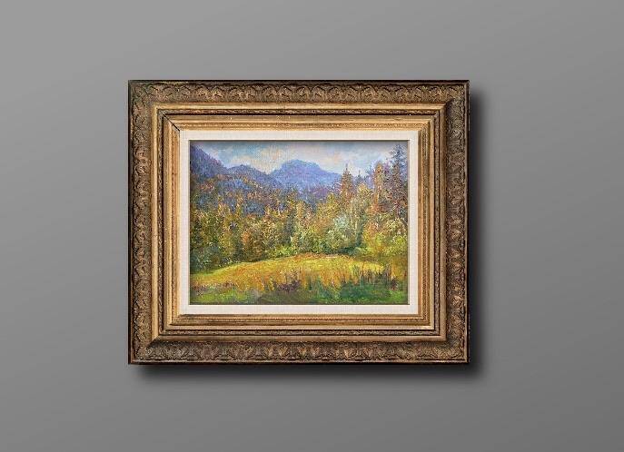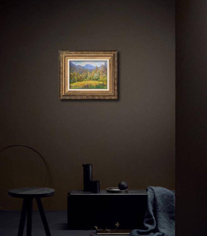 标签 山区•树木•森林夏日场景•山间小路印象派•现实主义•油画光与影•蓝天