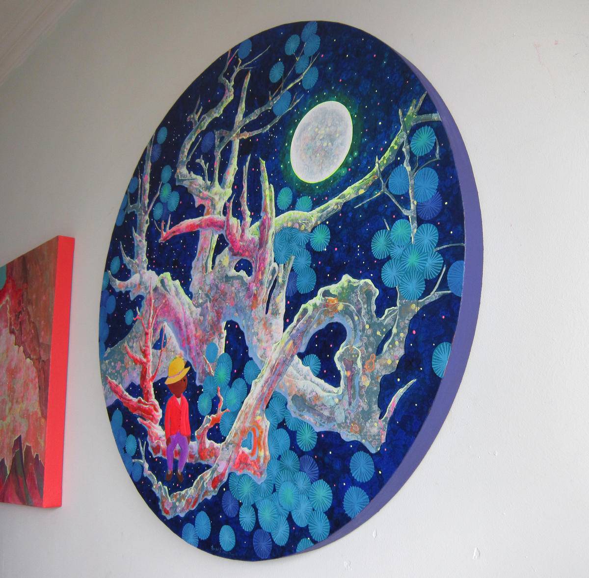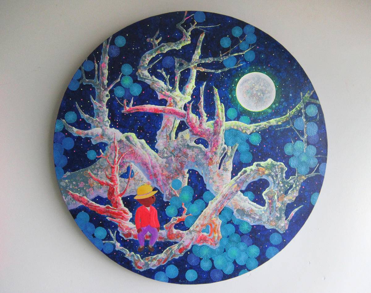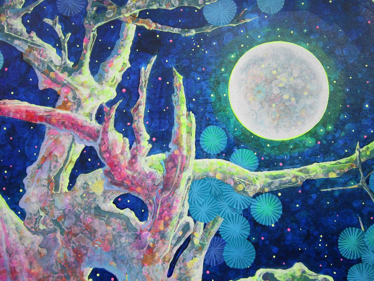 在创作上,一直以来我都在追求两个方向。一是用现代审美来表达中国传统意境。二是渴求画面里有光的感觉,有安静的力量。这件作品把这两方面结合起来,现代感十足的萌熊像是穿越到了有着古典韵味的画面间,画面新颖又和谐,似真又梦幻。这是一种新的演绎与转换,希望用独特的视角表达新的中国风。