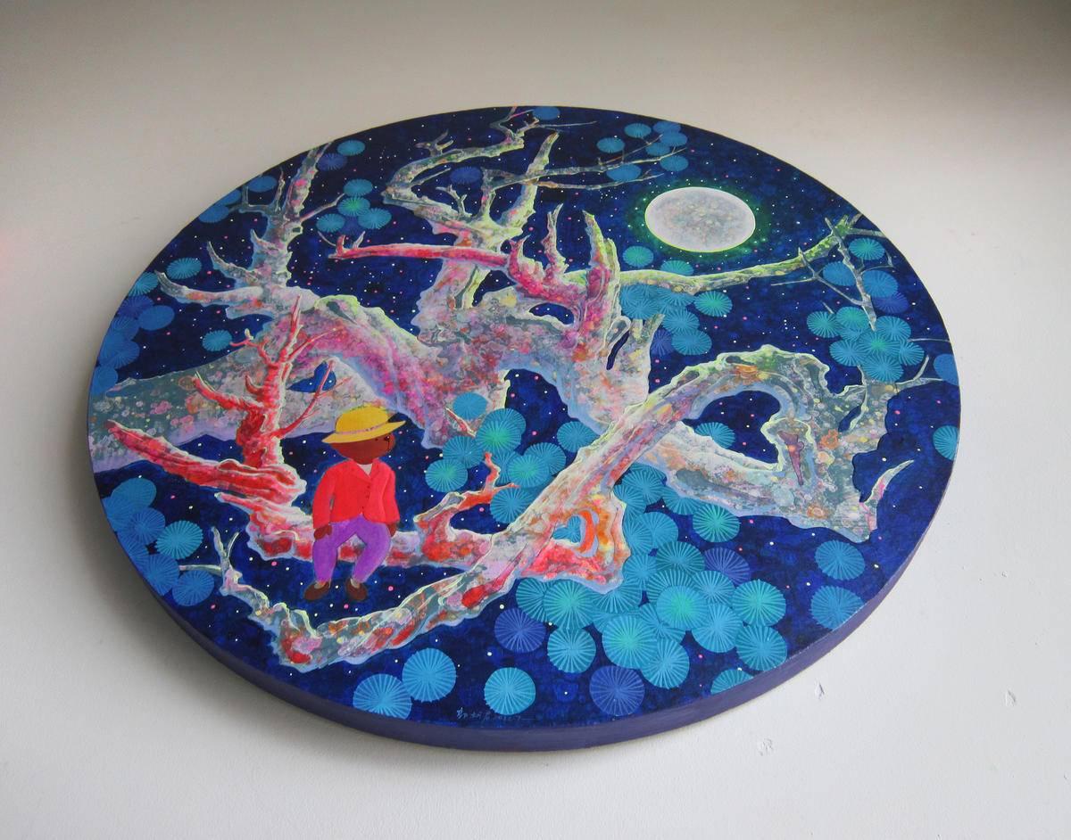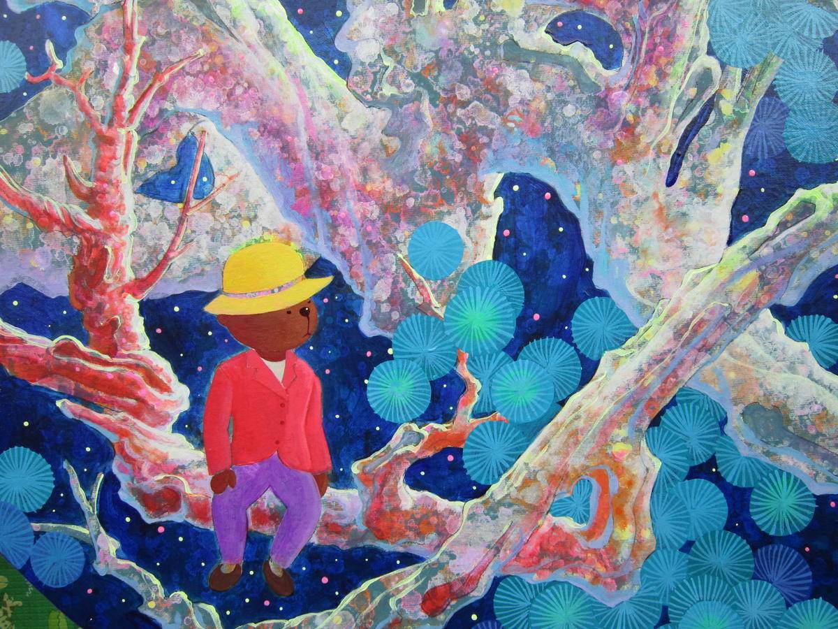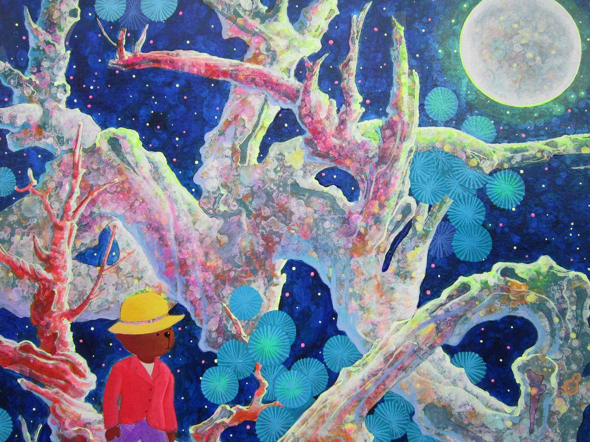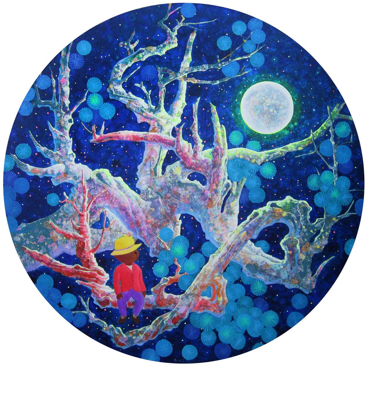 在创作上,一直以来我都在追求两个方向。一是用现代审美来表达中国传统意境。二是渴求画面里有光的感觉,有安静的力量。这件作品把这两方面结合起来,现代感十足的萌熊像是穿越到了有着古典韵味的画面间,画面新颖又和谐,似真又梦幻。这是一种新的演绎与转换,希望用独特的视角表达新的中国风。