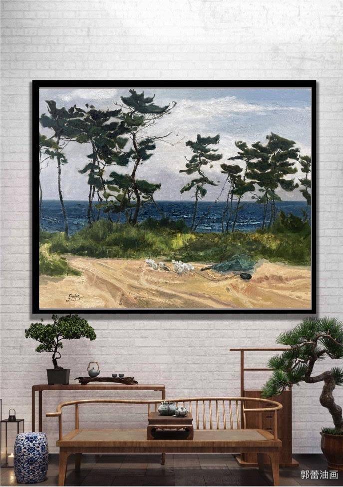 松林听海之雨季(80×100cm已实木装裱)