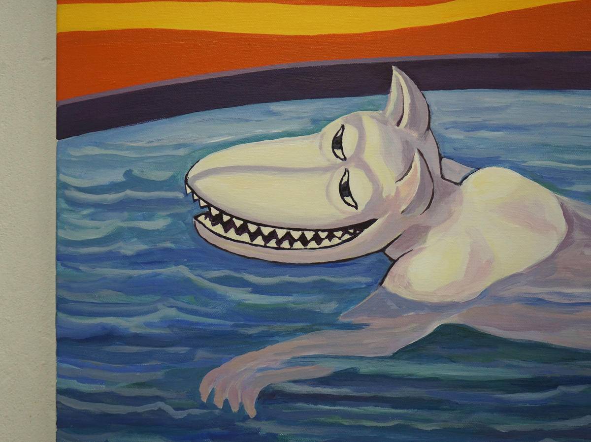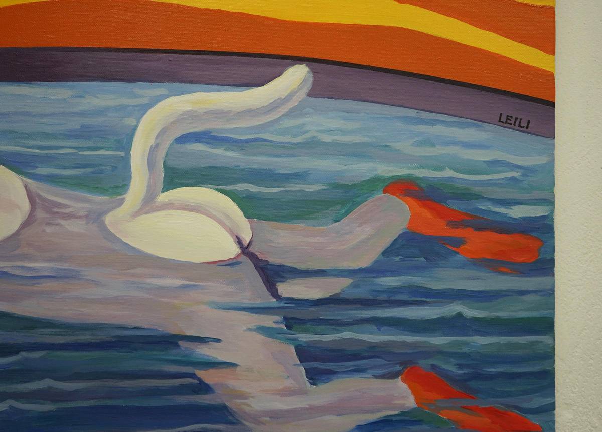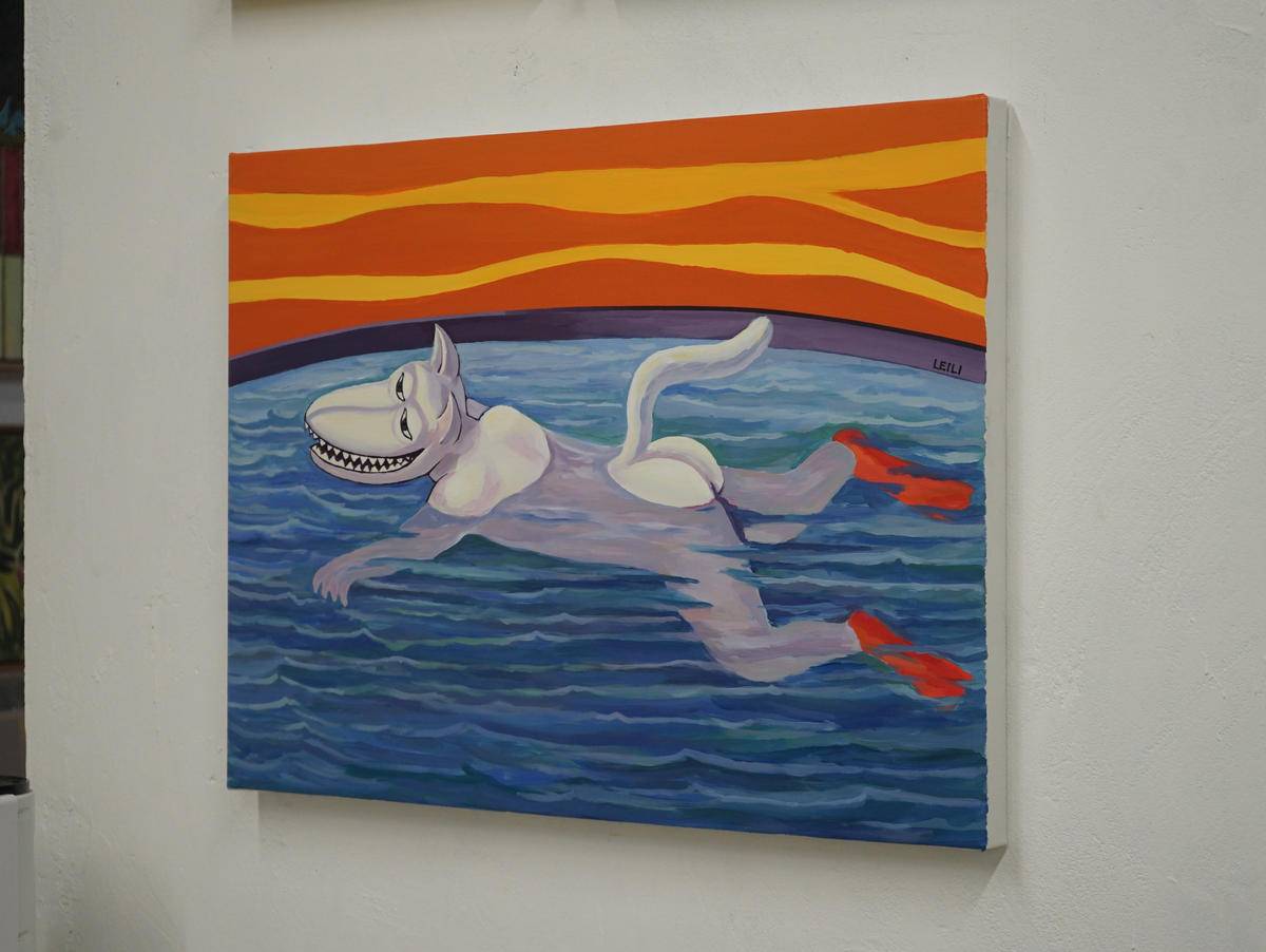 可乐狼系列作品是LEILI&ART的一组原创IP,我们幻想有一片可乐森林,森林里有可乐树,可乐树富含天然的可乐饮品。可乐狼是可乐森林的老大,他喜欢采集可乐、喝可乐泡可乐澡。可乐狼掌管他的可乐森林,在远处,还有一片沙漠,是雪碧沙漠,这幅作品描绘的是雪碧狼在她的沙漠无边泳池游泳的场景。