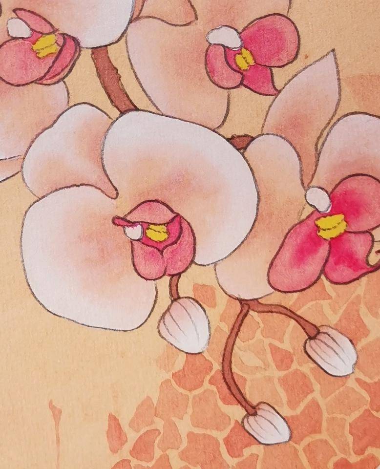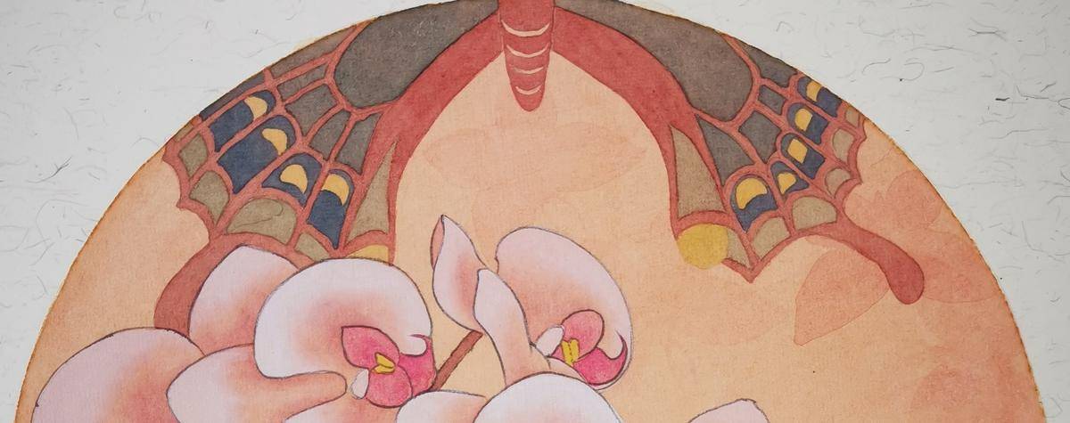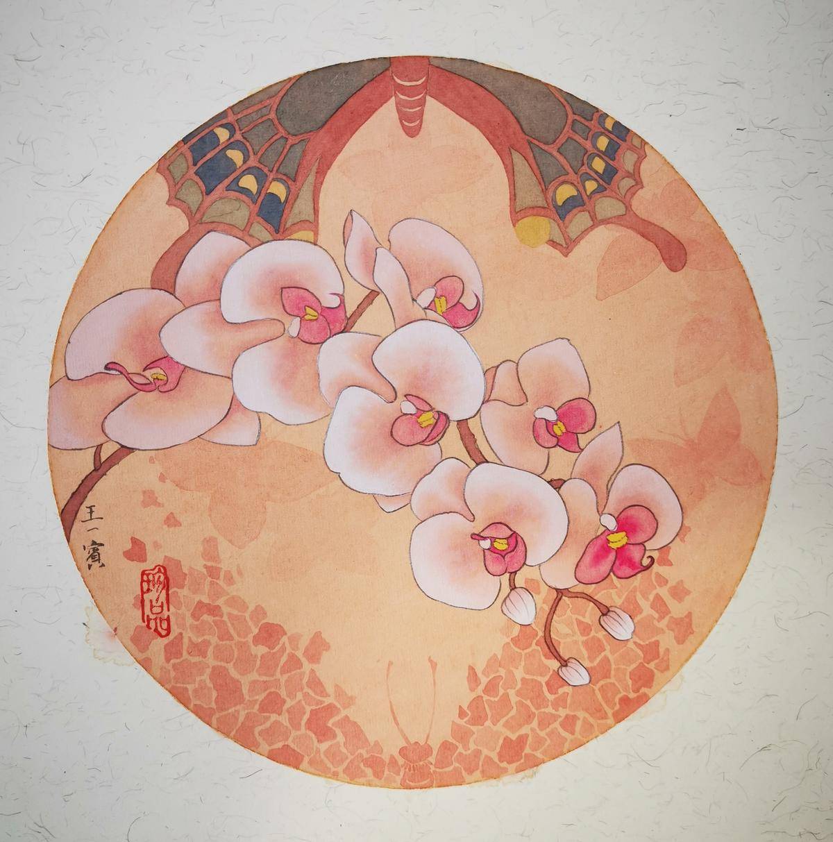 2020年去海南三亚森林公园玩儿,到了蝴蝶兰谷,真的被蝴蝶兰的美深深地吸引。2022年吉林出现YQ,支援长春回来后,隔离期间突然想画蝴蝶与兰花,就开始创作了。