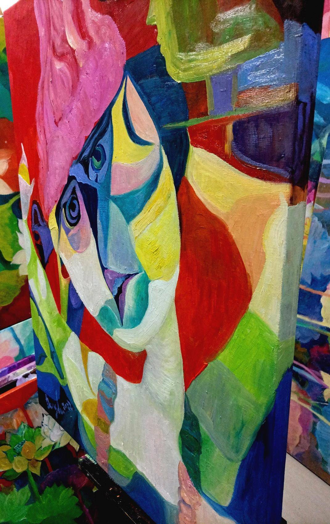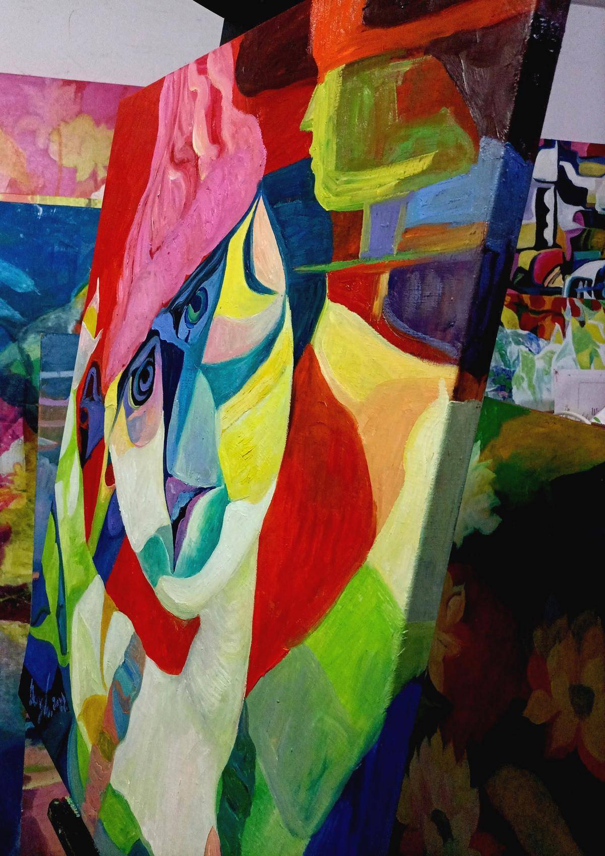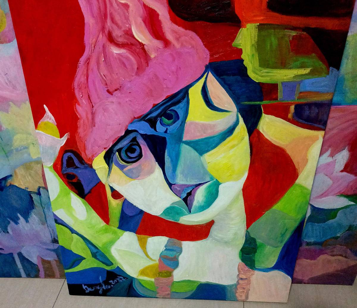 尝试一下分割画面方法画的此幅女孩像。用的纯色比较多。油画比较繁琐,需要很多遍才能画出来这个效果的。