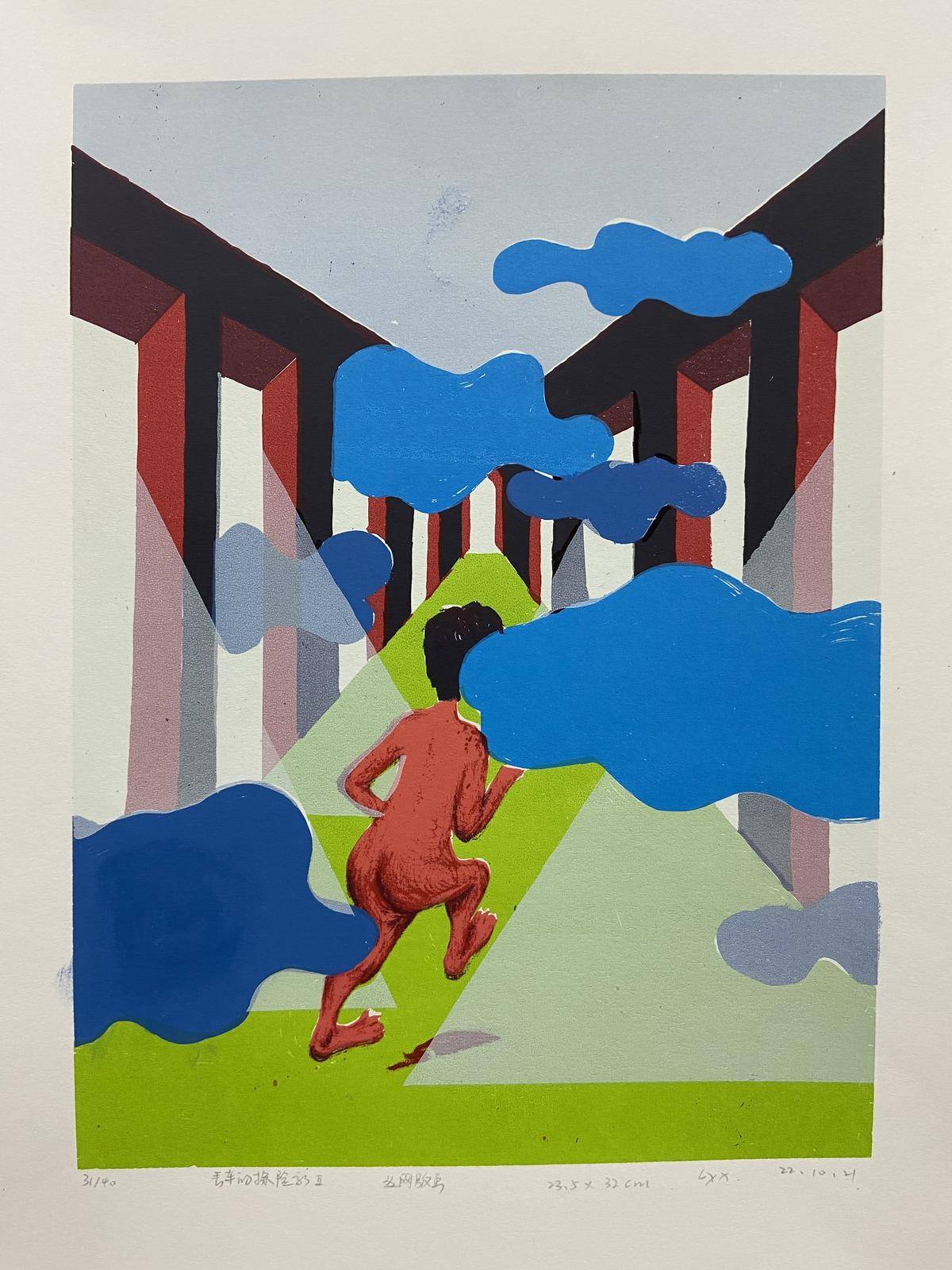 版画(丝网版画) / 350克大度整开欧纯棉纸米白 / 23.5×32cm(装裱后30×36cm) / 2022 / 共40版 库存5版