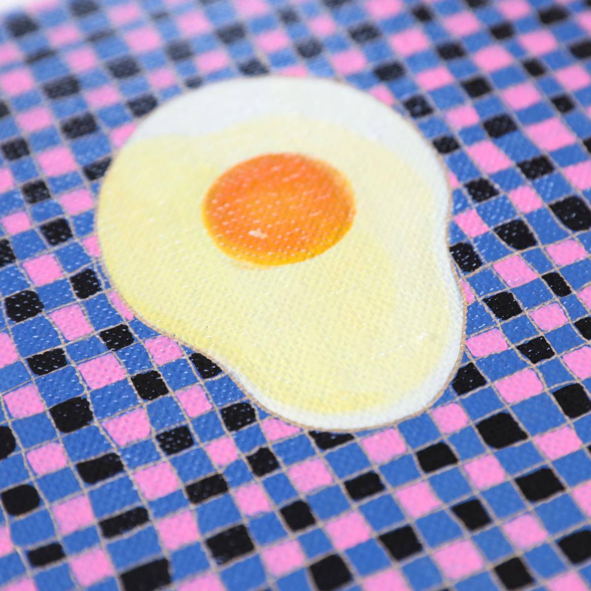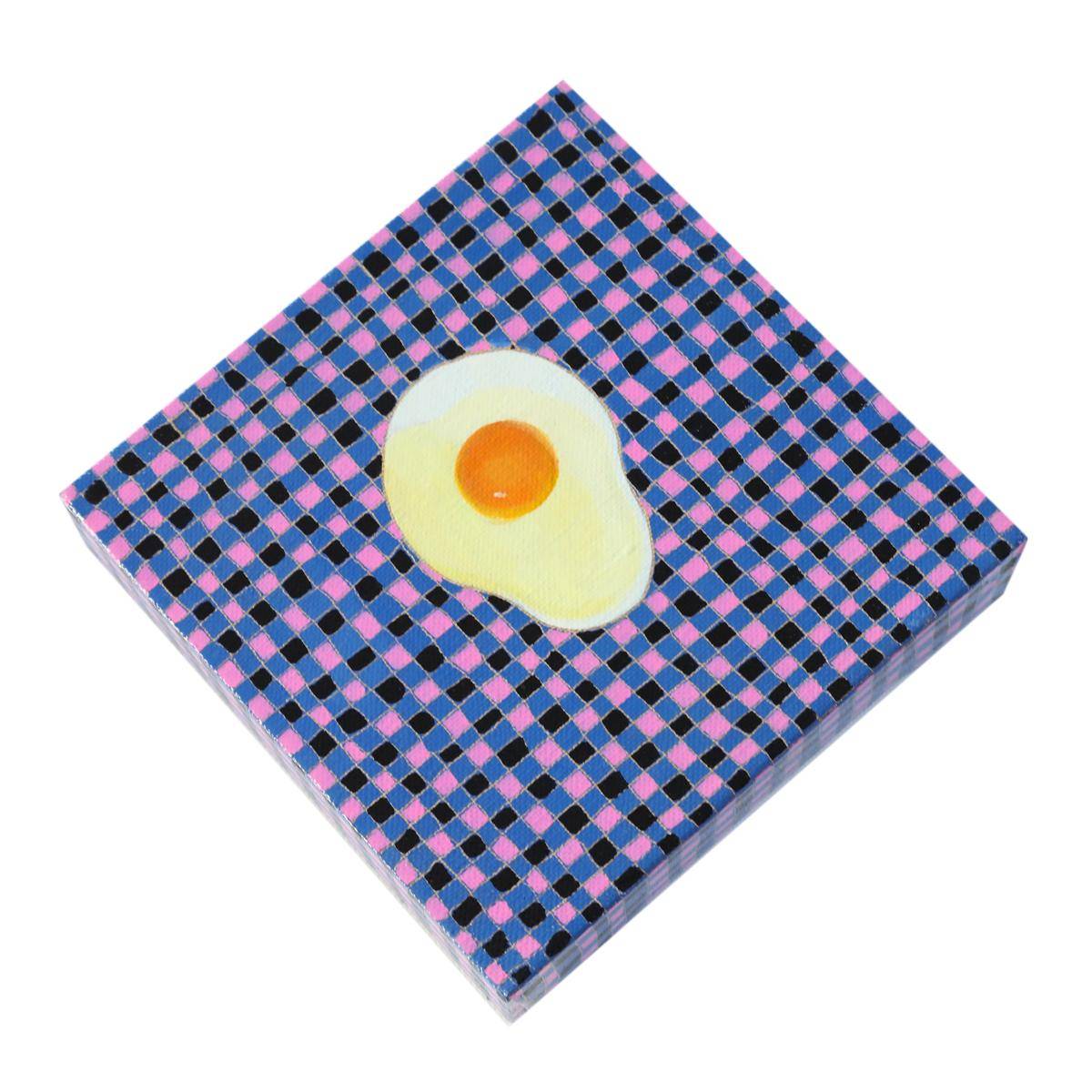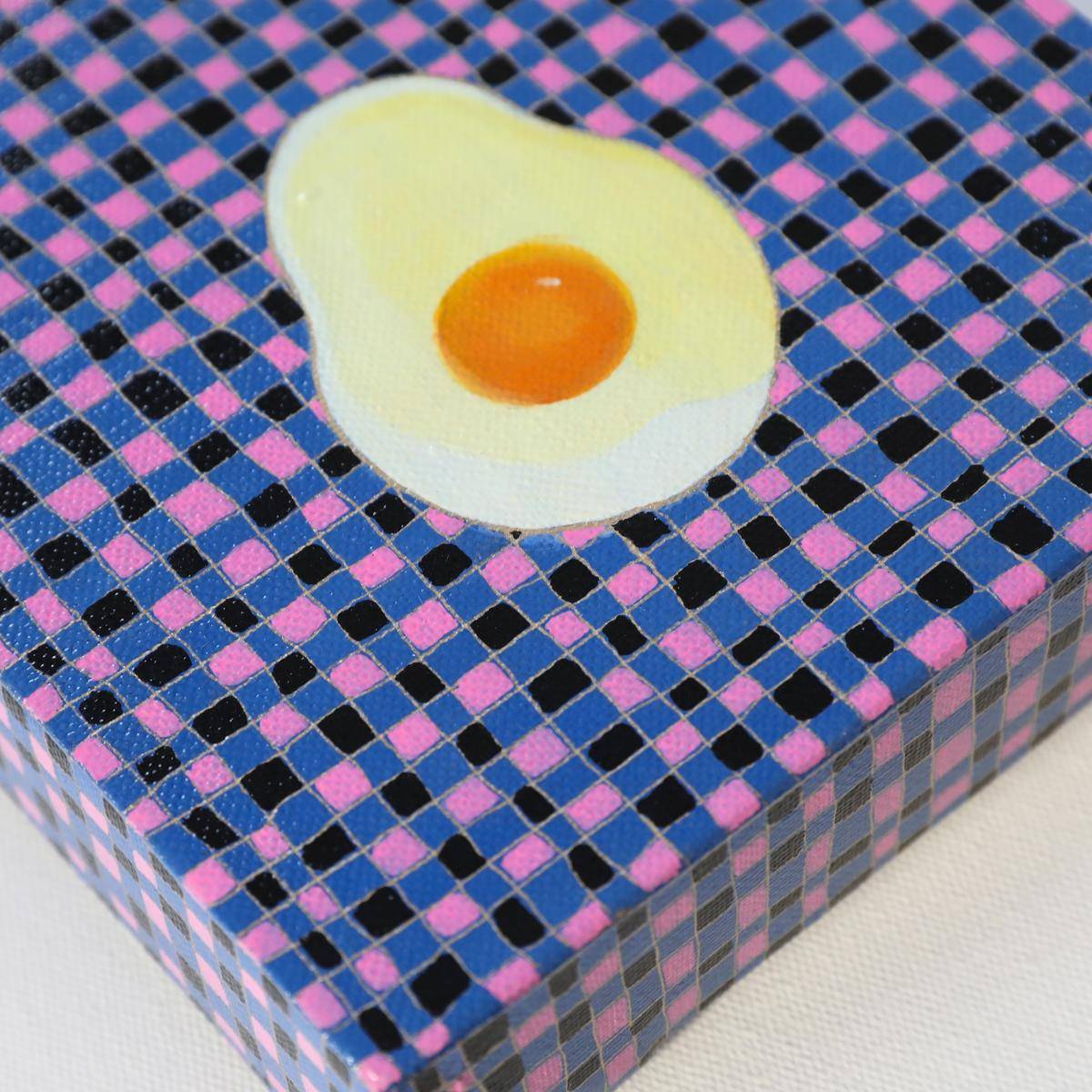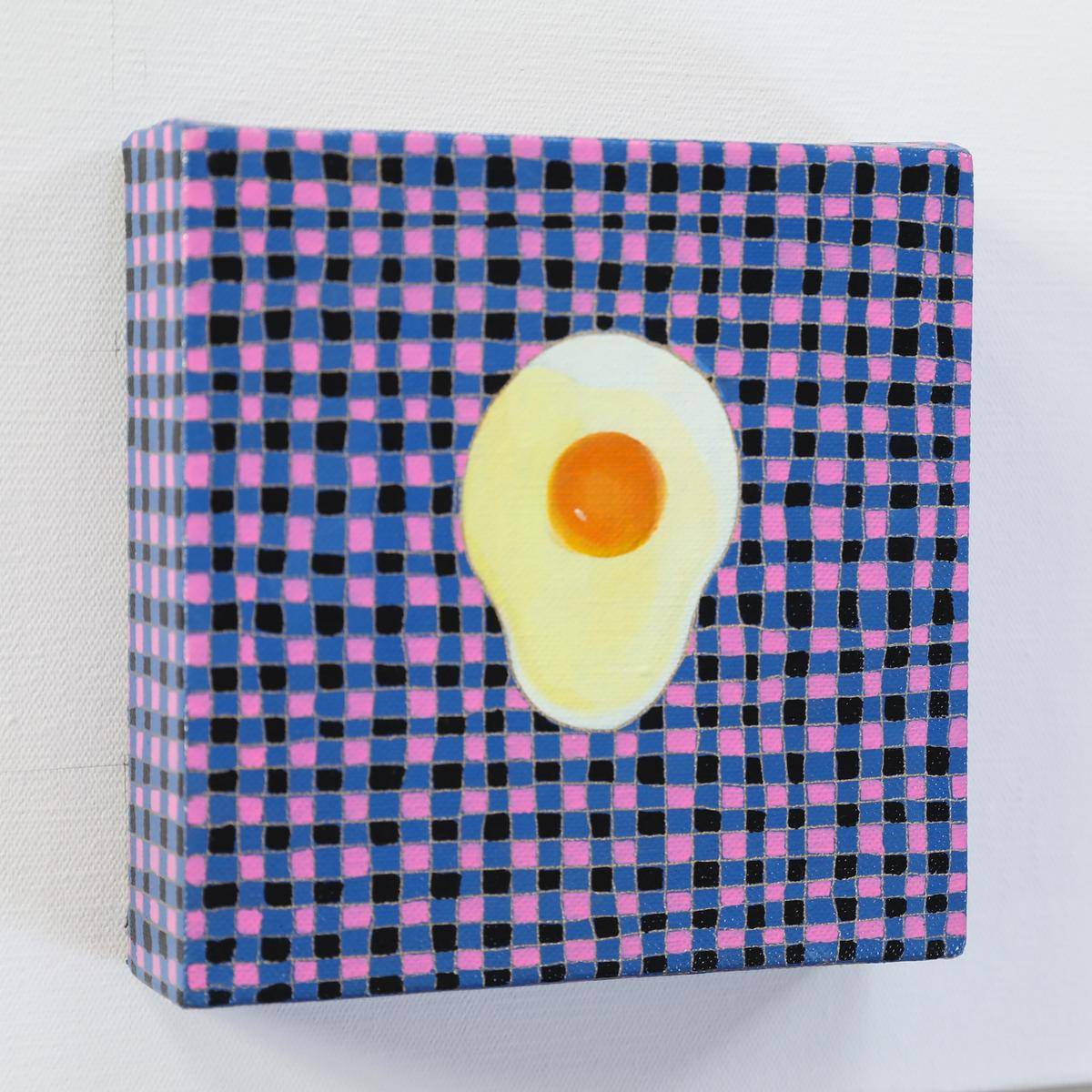 达芬奇在故事里画了三年鸡蛋,所以我对我这系列作品所划定的期限为三年。最初我只想到了要画一些黄皮或者白皮鸡蛋,但显然,故事中并没有达芬奇 画的鸡蛋都是完整带壳的鸡蛋这种设定。所以我又加了荷包蛋,煎蛋,水煮蛋等等,在这个过程中,我发动了我的好朋友们帮我记录自己见到的好看的, 可爱的鸡蛋,过程非常开心快乐,这也在意料之外的。各个朋友的可爱举动,让我更有坚持画下去的动力。每一颗蛋都包裹着属于它 自己的小小的故事。这让这次创作又添加了更多的不一样的添加剂在里面。
