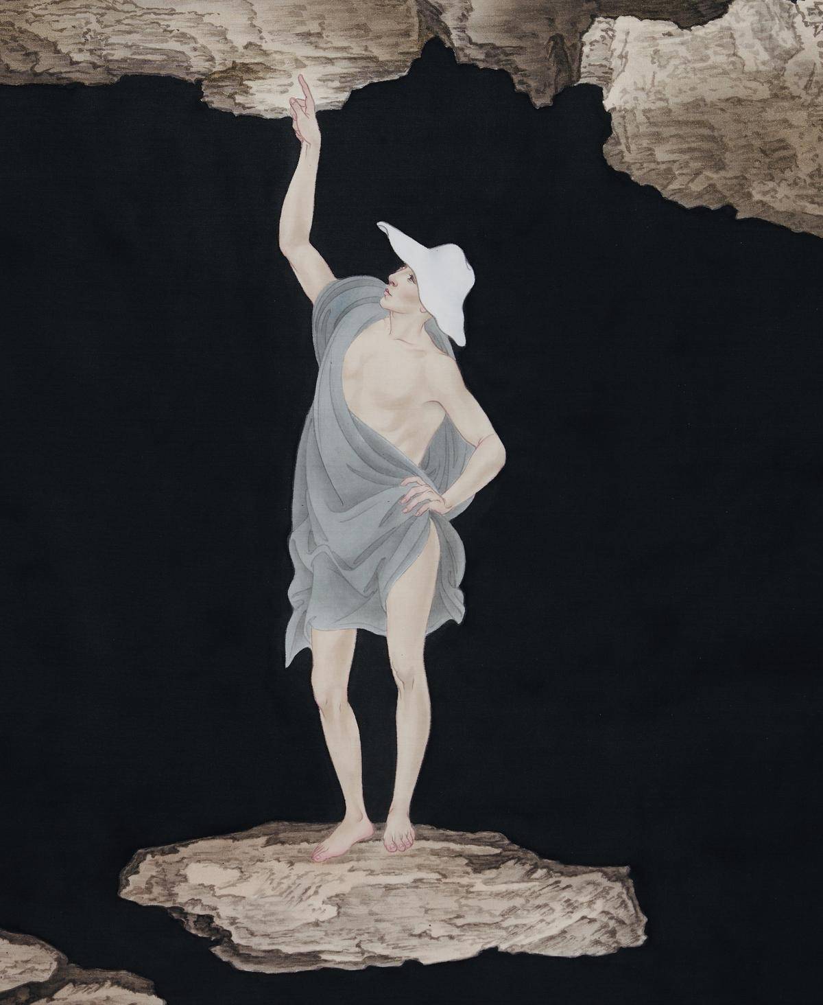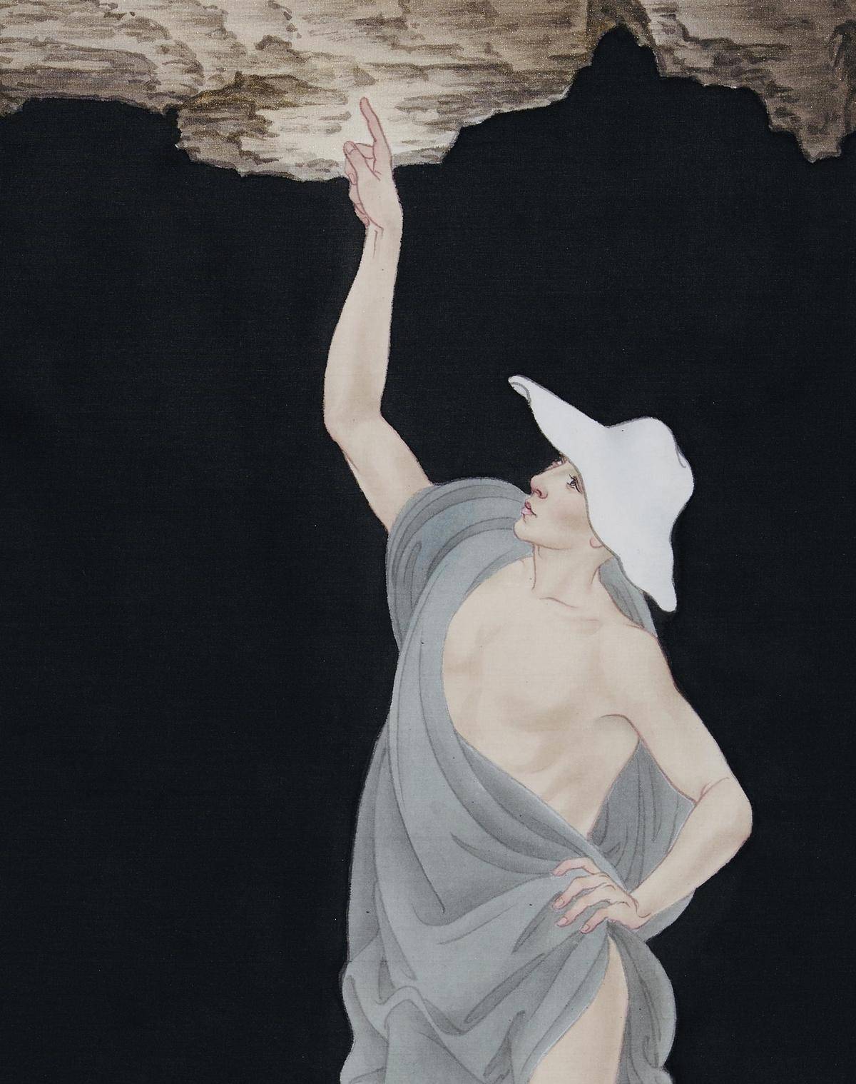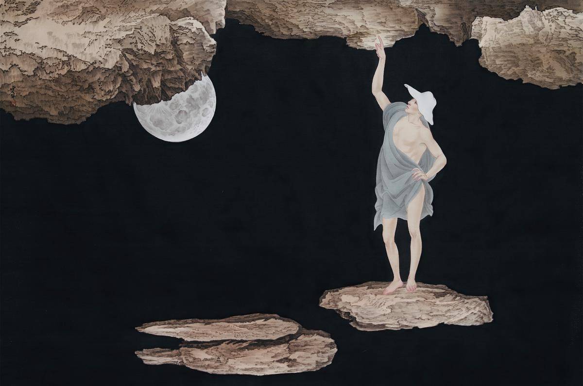 一线一点,一人一石,绘画带给我更多的未知。喜欢庄子“超以象外”的意境,绘画不是单层的平面的自然再现,不是情的寄托和传统的“气运生动”,而是如何建立自我画面秩序的网幕。对于空间的探索一直是我艺术追求的目标,工笔画能让我更加安静地去编织自己的空间,每一根线条的转折、跳动都会让我的内心更加平静。然而在学习的过程中,惯性的思考和雷同的技法,逐渐消磨着我对于创作的激情。对照经典,将画面重新进行拼接、重组、联想,在不断的分析之后,我发现自己越发变得不知所措。一次偶然的畅想,唤起了我儿时的幻想:我们的世界似乎被包含在另一个更大的空间之中,不再假定于绘画的某种含义,怀着对原始的追忆、对现世的放纵、对神秘与未来的憧憬,让意识自然流露,还原到绘画本身。正如玛格里特所说的那样:“心灵喜欢未知的东西,喜欢其意义尚未为人所知的意象,因为心灵本身的意义就是未知的”。