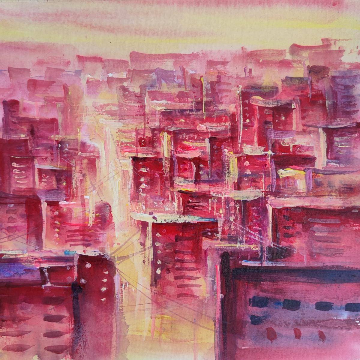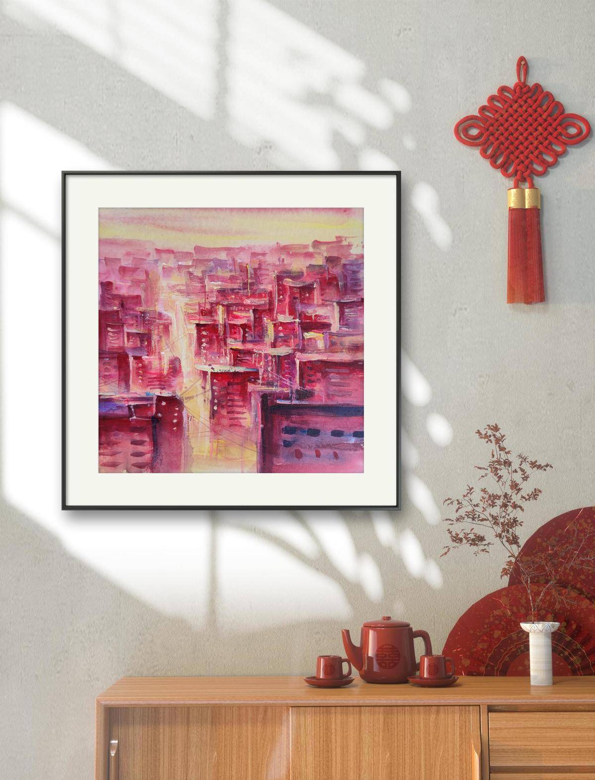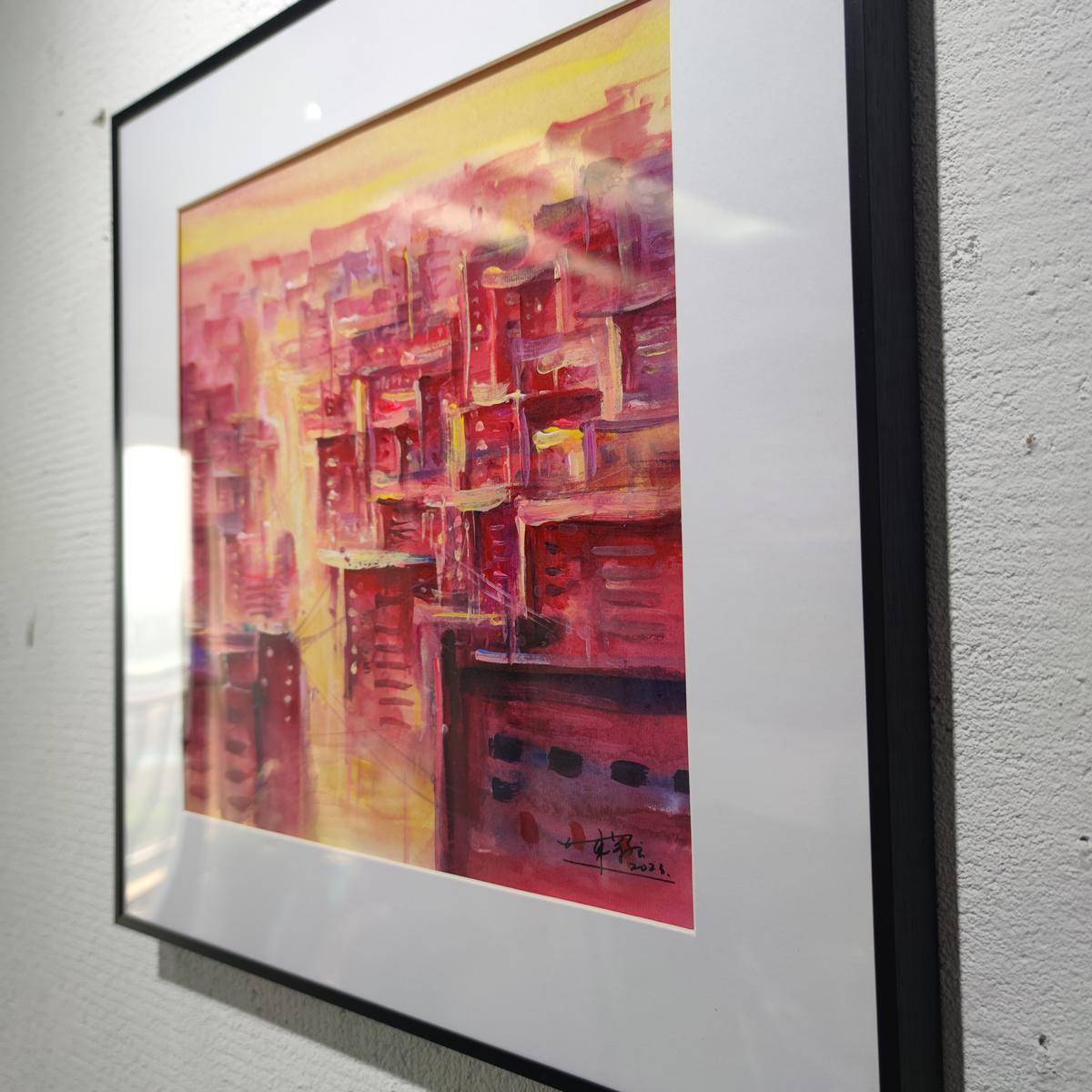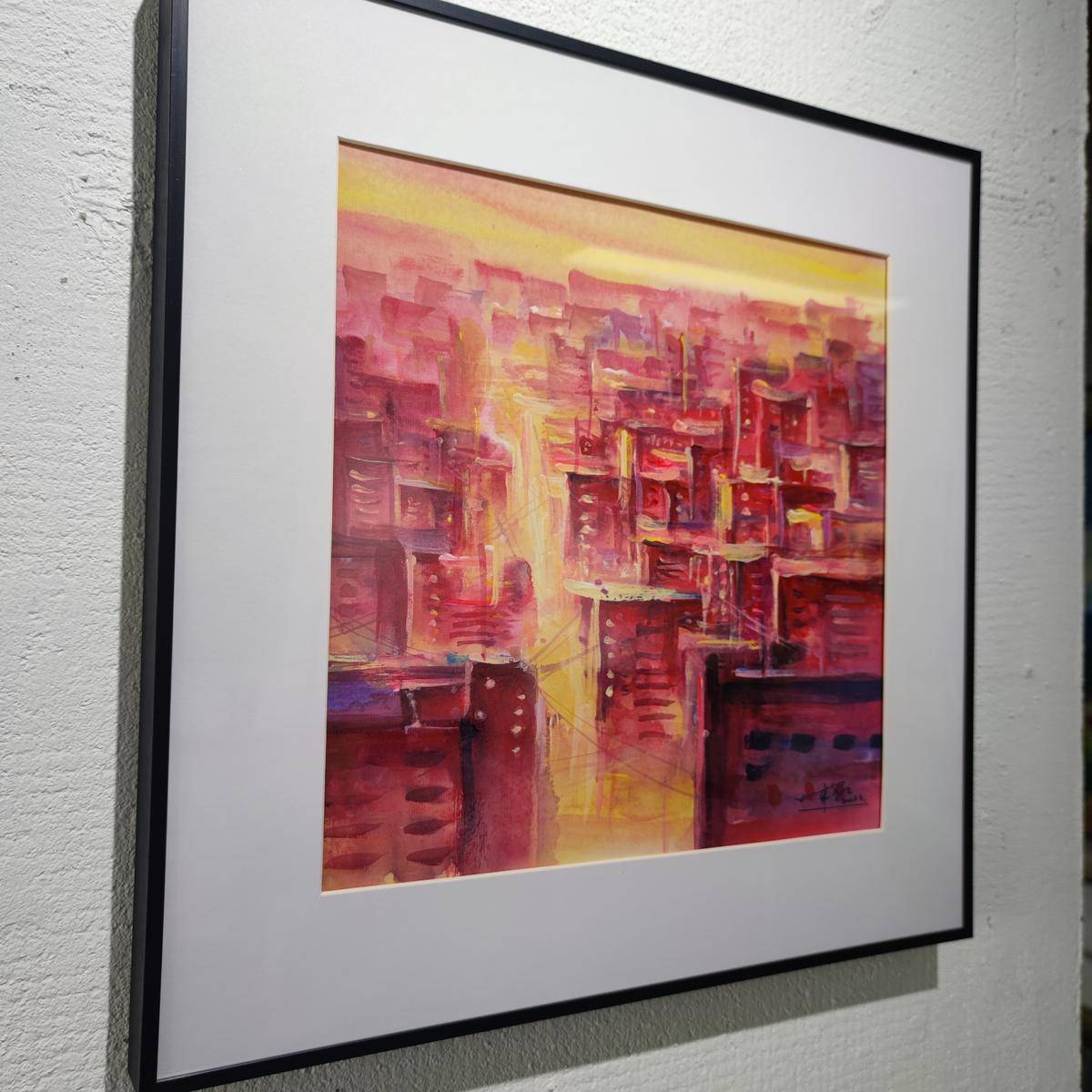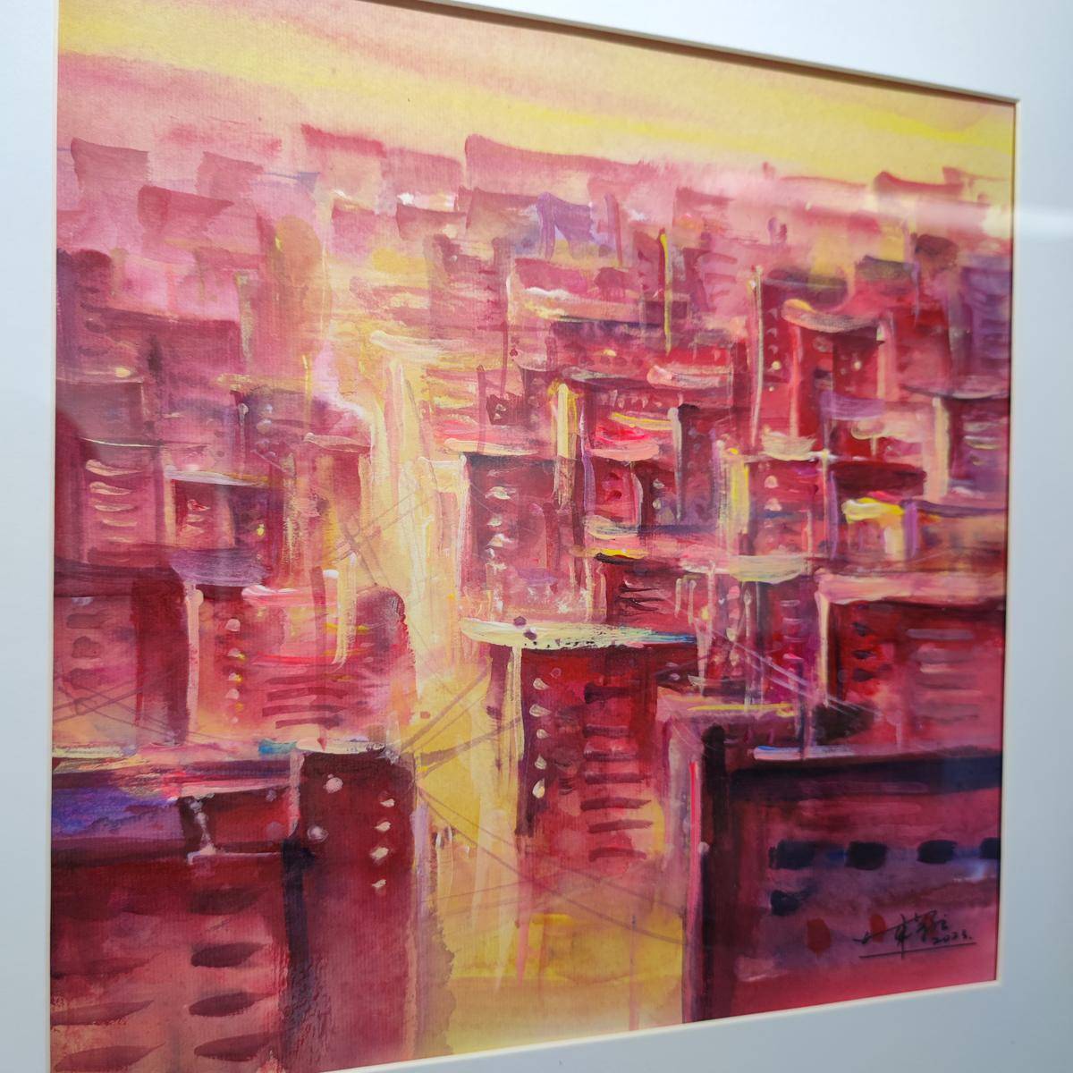 丙烯(纸本丙烯) / 宣纸软卡,丙烯颜料,国画颜料,黑色拉丝铝合金外框 / 26×26cm(装裱后38×38cm) / 2023