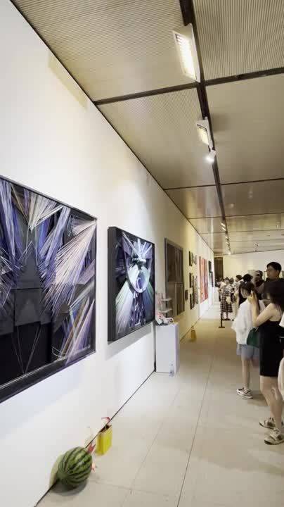 《聚·散》灵感来源于:“聚散终有时后会亦有期”。我想通过此次作品作为我在央美四年的一个小结尾(两幅作品都有一个半圆,结合在一起就是一个句号,也可以说是一种圆满),这个作品也代表了我的人生的一次转折。2019年9月为理想而来。2023年毕业与老师同学分离心里不免有许多复杂情绪,但毕业的也是一种新开始,就像看展的小伙伴给我的留言:“分离是相聚的开始”。人生中总是与身边的老师朋友经历聚散的过程。我认为相聚总是会愉快的,因此我在画面《聚》的中心做了空间上的凸起,颜色也是最靓丽欢快愉悦的,并且从天花板打了聚光灯以表达这种聚的、欢愉的心态状态。《散》的中心是凹的、暗淡的,色调是代表忧郁的紫色,天花板打了散光灯,散或许是孤寂的,但是终会在某一个点上继续相遇,画面四周是线的相聚,从某种意义上来说分离亦是另一种相聚。