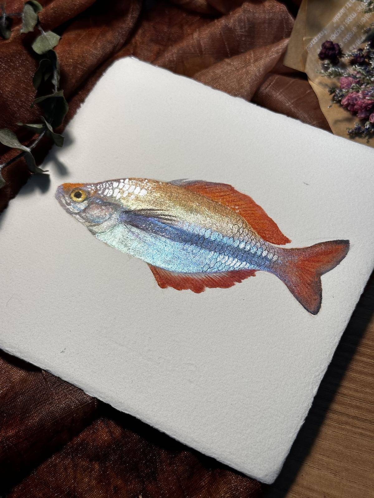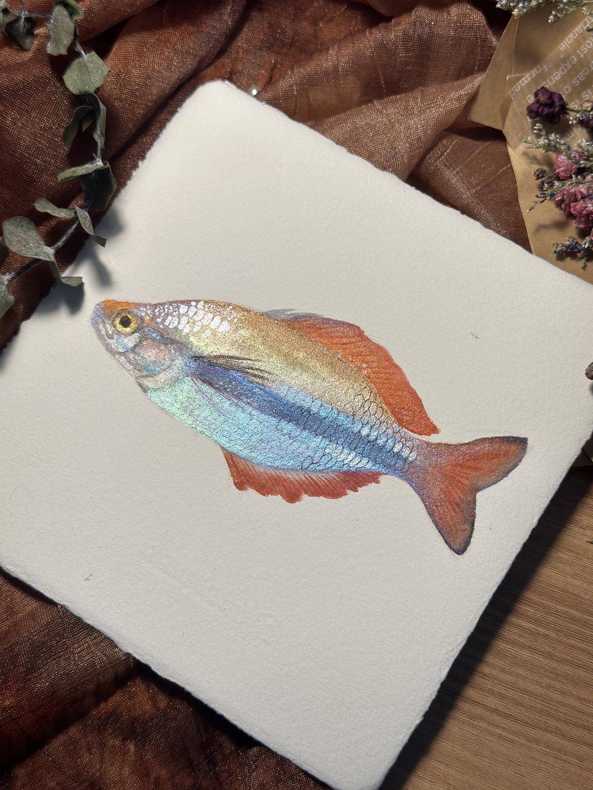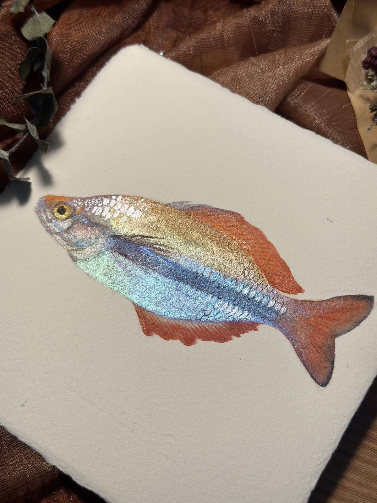 Artand - 艺术收藏风向标在“Artand”App中打开打开奥梯虹银汉鱼(Melanotaenia oktediensis)-75水彩 / 15×15cm2023年12月19日发表348浏览0个赞非卖品邮费包邮(仅限大陆地区,港澳台及海外地区双方可协商邮费问题)作品描述The sea 系列,第88张画之第75幅画:奥梯虹银汉鱼(Melanotaenia oktediensis),为辐鳍鱼纲银汉鱼目虹银汉鱼科的其中一种,被IUCN列为易危保育类动物,分布于巴布亚新几内亚Ok Tedi河流域,为热带鱼类,体长可达10公分,栖息在海拔300-500米的高山溪流底中层水域,生活习性不明,可做为观赏鱼。2020年被IUCN列为极危(CR)动物。画这些的目的就是:为了以后大家想看到这种濒危物种,不止只有文字,也可以有画作存在。希望这些物种以后可以不止存在于画作之上,也希望大家多多关注海洋生态。#灭绝海洋动物 #濒危海洋动物标签 灭绝海洋动物濒危海洋动物陈雨静88件作品2粉丝精选评论(0)还没有精选评论噢,是时候发表下看法了赞标记评论非卖品基础保障不支持 7 天无理由退货拍卖与闪购鉴于作品的特殊性,不支持7 天无理由退货。 一口价作品由艺术家出售时自行勾选,买家诸如不喜欢、不 满意或不合适等非质量问题,不支持 7天无理由退货。有装裱(外框)艺术家会为您购买的作品赠送外框装裱,如需 了解具体细节请在购买前与艺术家私信确认。有装裱(外框)在您购买作品并完成评价后,系统会在【订单 详情页面】为您提供电子收藏证书,版面符合 A4尺寸,如有纸质版需要,您也可以自行直接 打印。发票选项与艺术家协商开票事宜。我知道了